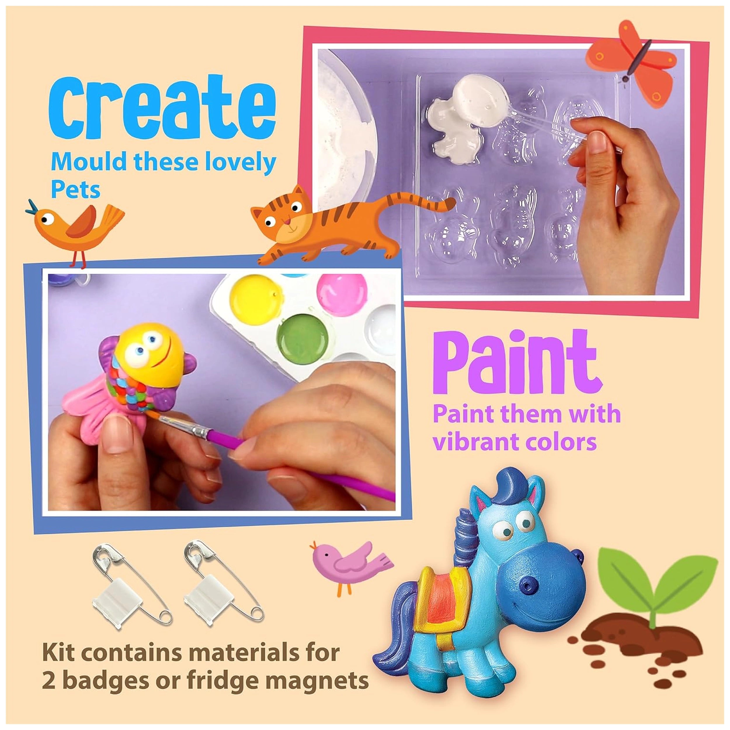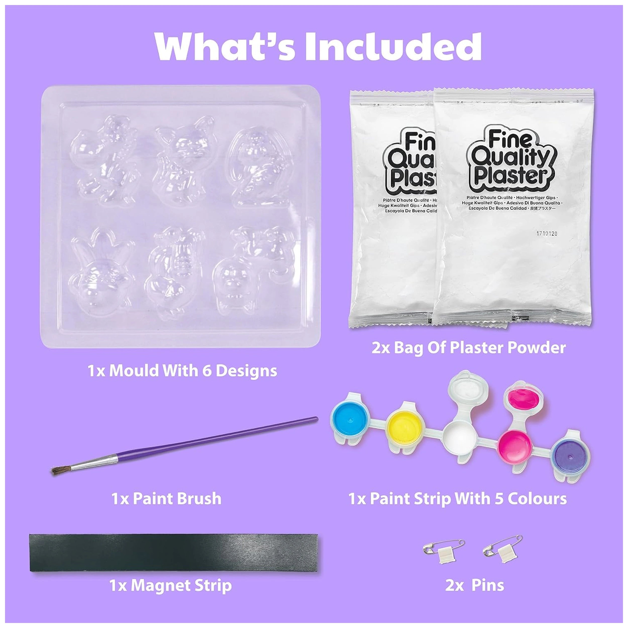 In addition to the mould and paints, the kit also contains materials to transform the finished creations into functional items. With enough supplies to make 12 badges or fridge magnets, children can proudly display their artistic achievements on the refrigerator or share them with friends and family. This aspect of the kit not only enhances the crafting experience but also allows children to enjoy their creations long after the painting is done.