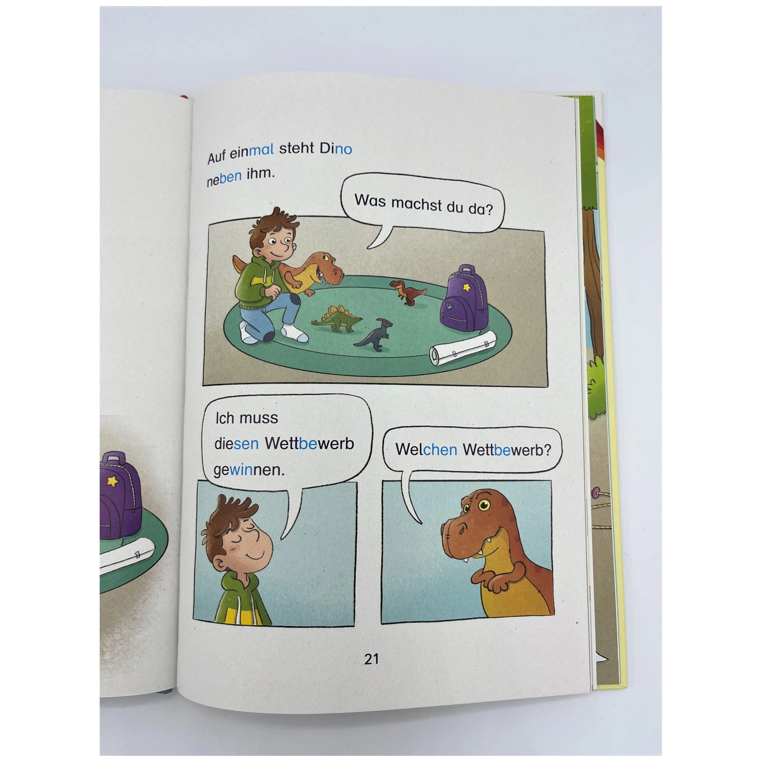 Introducing "ARENA - Learning to Read with an Exciting School Adventure," a captivating book designed specifically for first graders. This engaging story follows Elias, who is eagerly anticipating the "Show-and-Tell Week" at school. While his classmates present their favorite animals or family members, Elias is determined to steal the spotlight with his presentation on the Dino Park, complete with real model dinosaurs! However, he decides to leave his beloved plush dinosaur at home, thinking it’s not cool enough for school. Just as Elias begins his presentation, an unexpected event shakes the entire school, adding an element of surprise and excitement to the narrative.