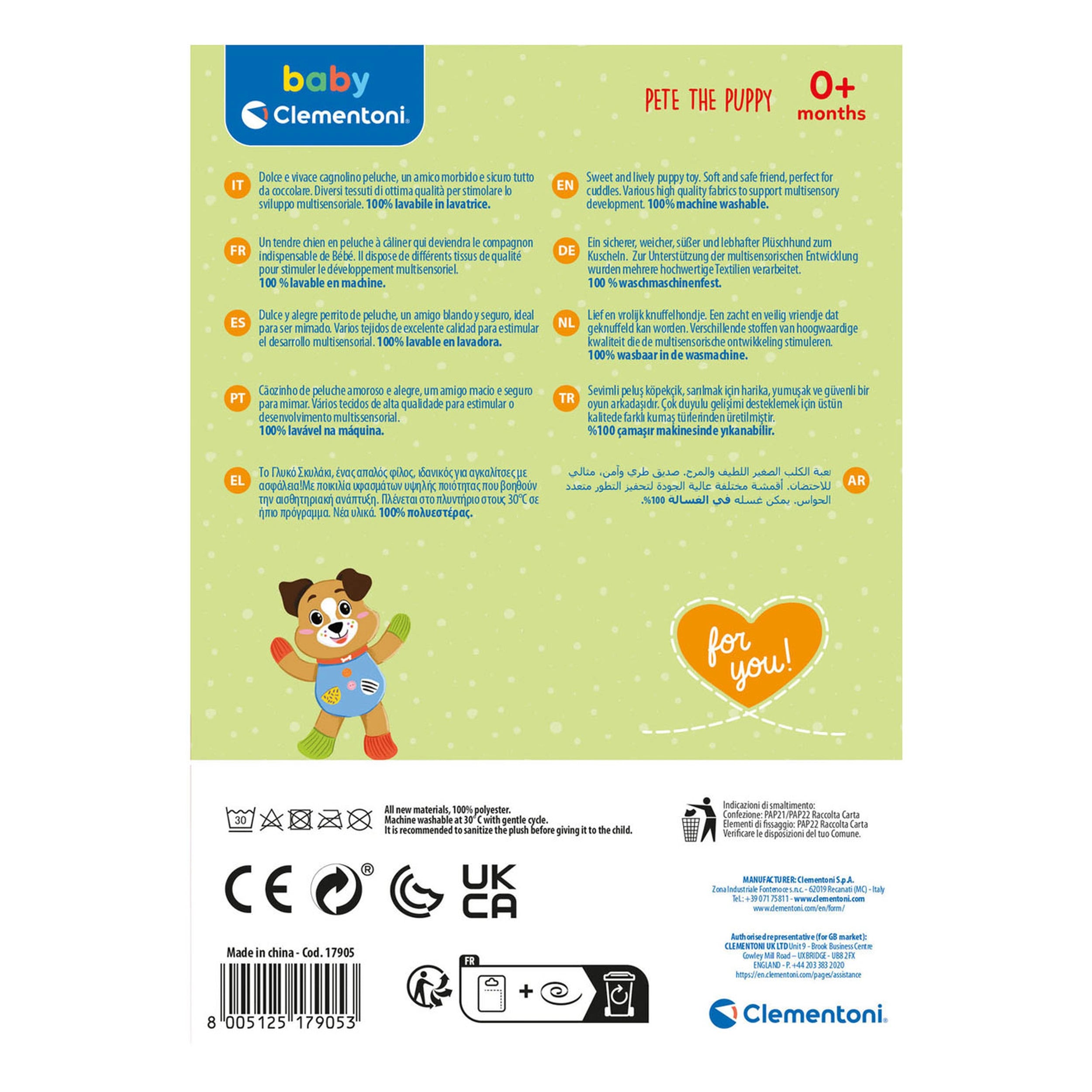 Baby Clementoni - Pete Il Cucciolo I Miei Primi Animali Peluche