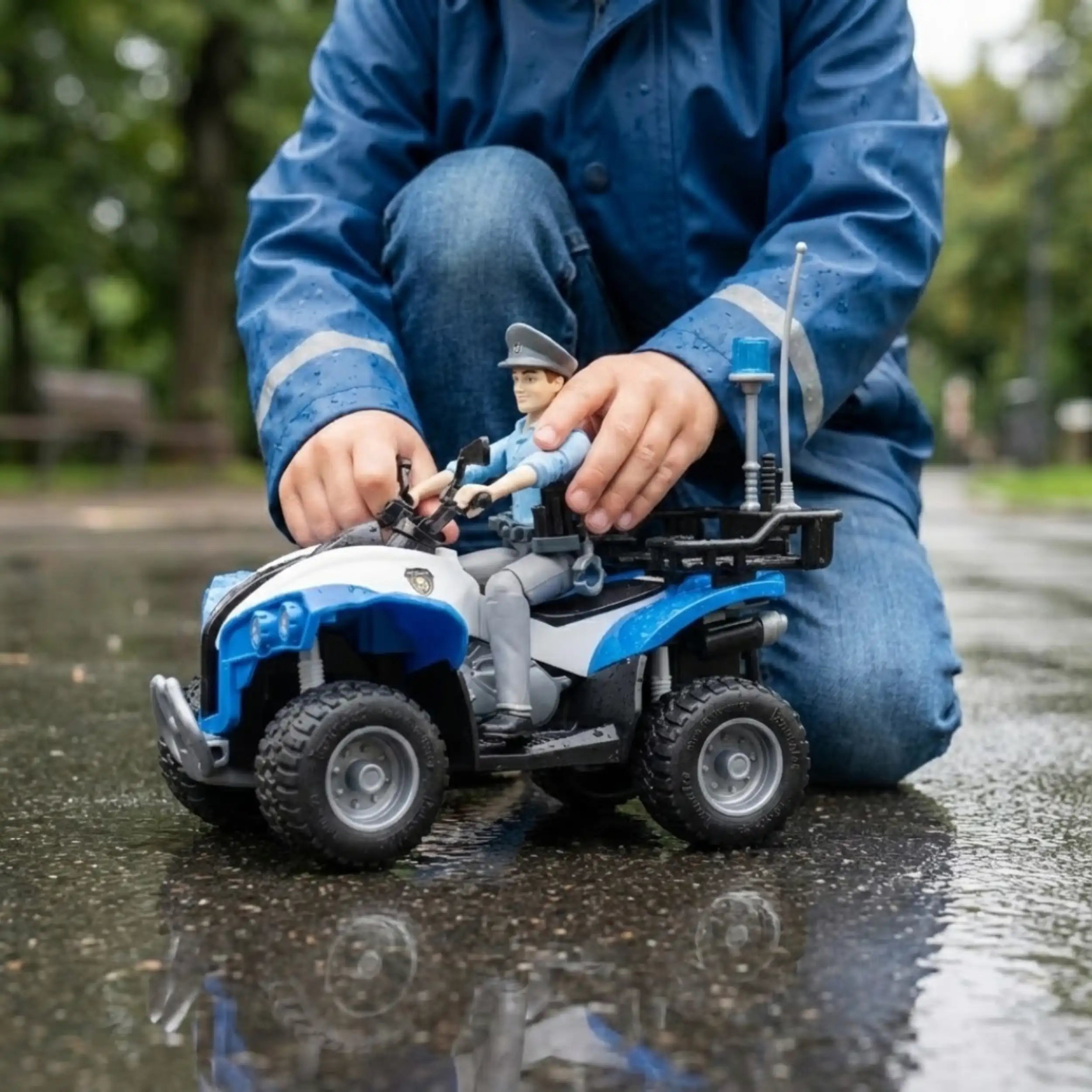 The included police officer figure adds an authentic touch to the play experience, allowing children to immerse themselves in their roles as protectors of the community. This character can be easily positioned on the quad, making it a dynamic part of the play scenario. The combination of the quad and the police officer figure encourages storytelling and role-playing, which are essential for developing social skills and emotional intelligence in young children.