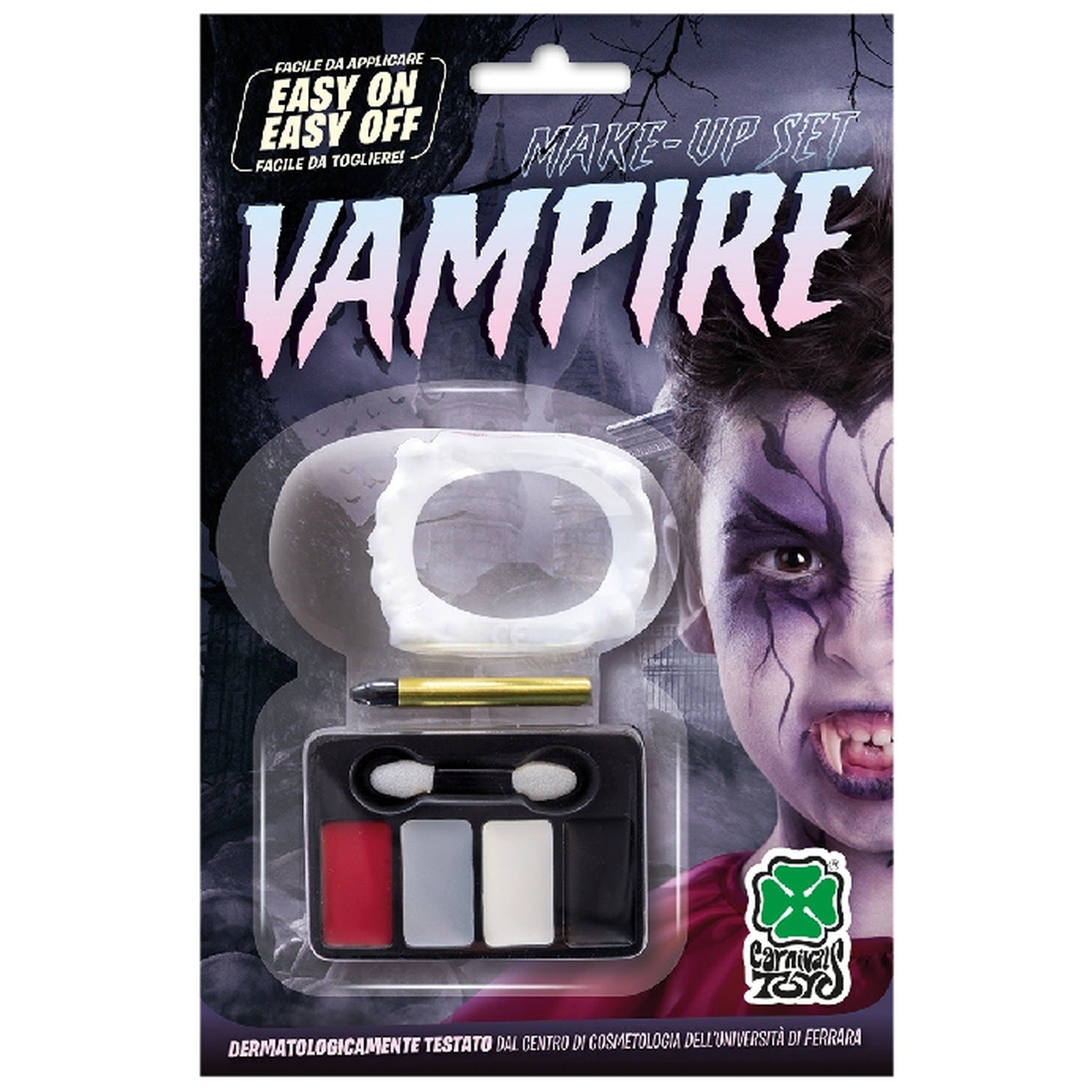 Whether you're preparing for a Halloween celebration, a cosplay event, or a theatrical production, this vampire make-up set is your go-to solution for achieving a professional-grade look. The blister packaging ensures that all components are kept secure and organized, making it easy to store and transport. With this set, you can unleash your creativity and bring your vampire character to life with confidence.