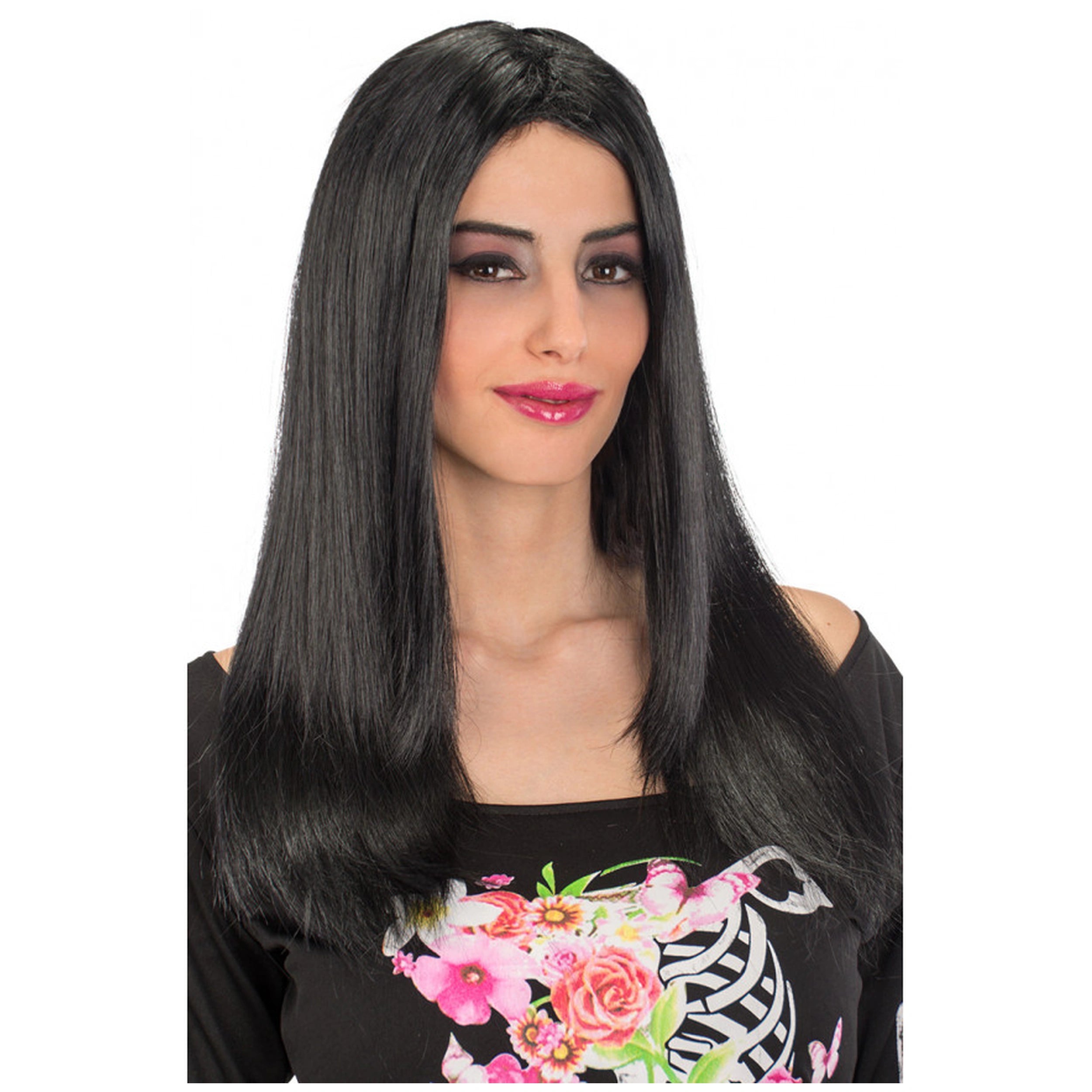 Carnival Toys - Parrucca Nera Lunga e Liscia per Divertimento e Gioco Creativo - Professioni Immaginarie e Gioco di Ruolo