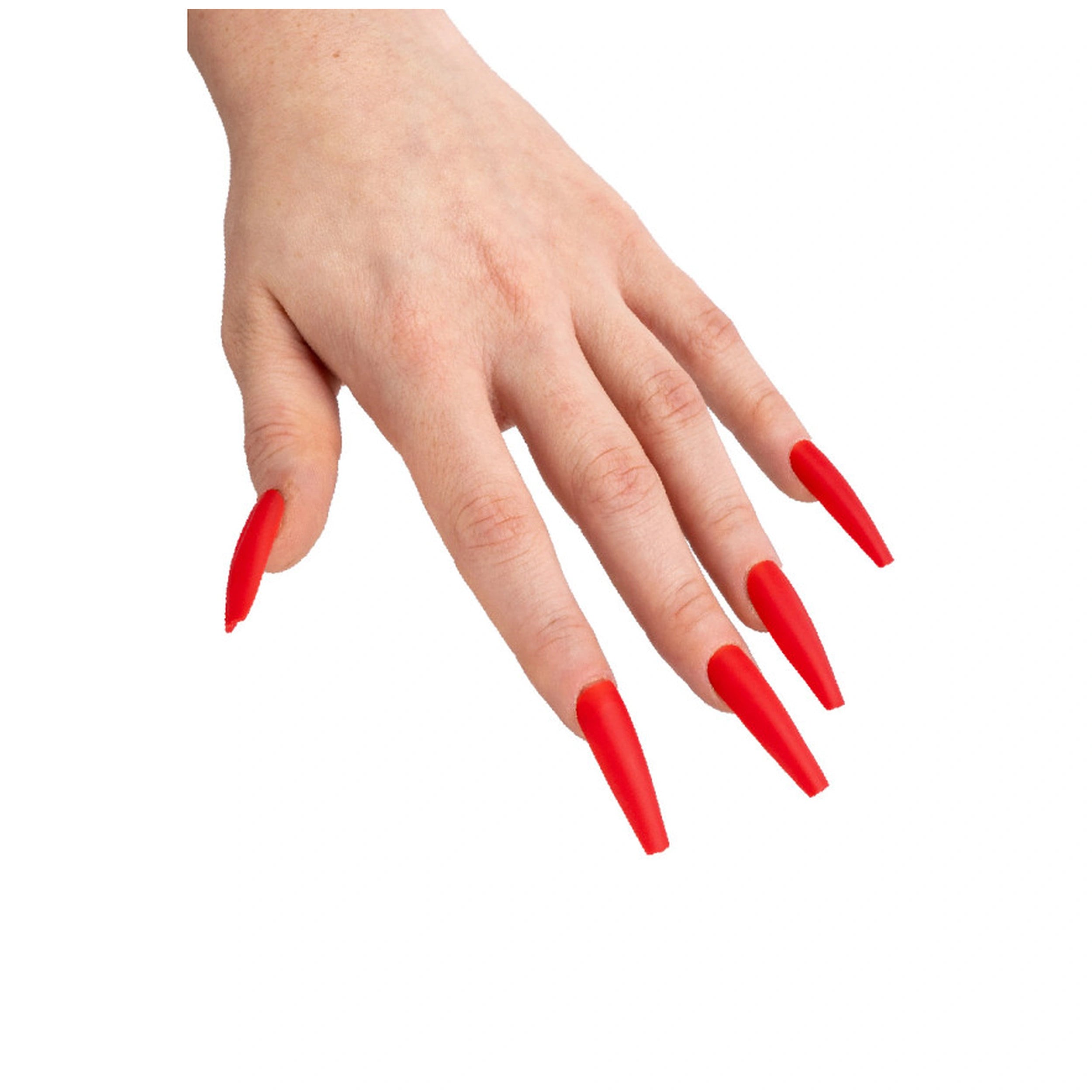 Introducing the Carnival Toys - Set Unghie Rosse Lunghe, a delightful addition to any costume or role-playing scenario. This unique set features ten striking red pointed nails, designed to elevate your dress-up experience with a touch of glamour and sophistication. Perfect for children and adults alike, these nails are an essential accessory for anyone looking to enhance their pretend professions or engage in imaginative play.