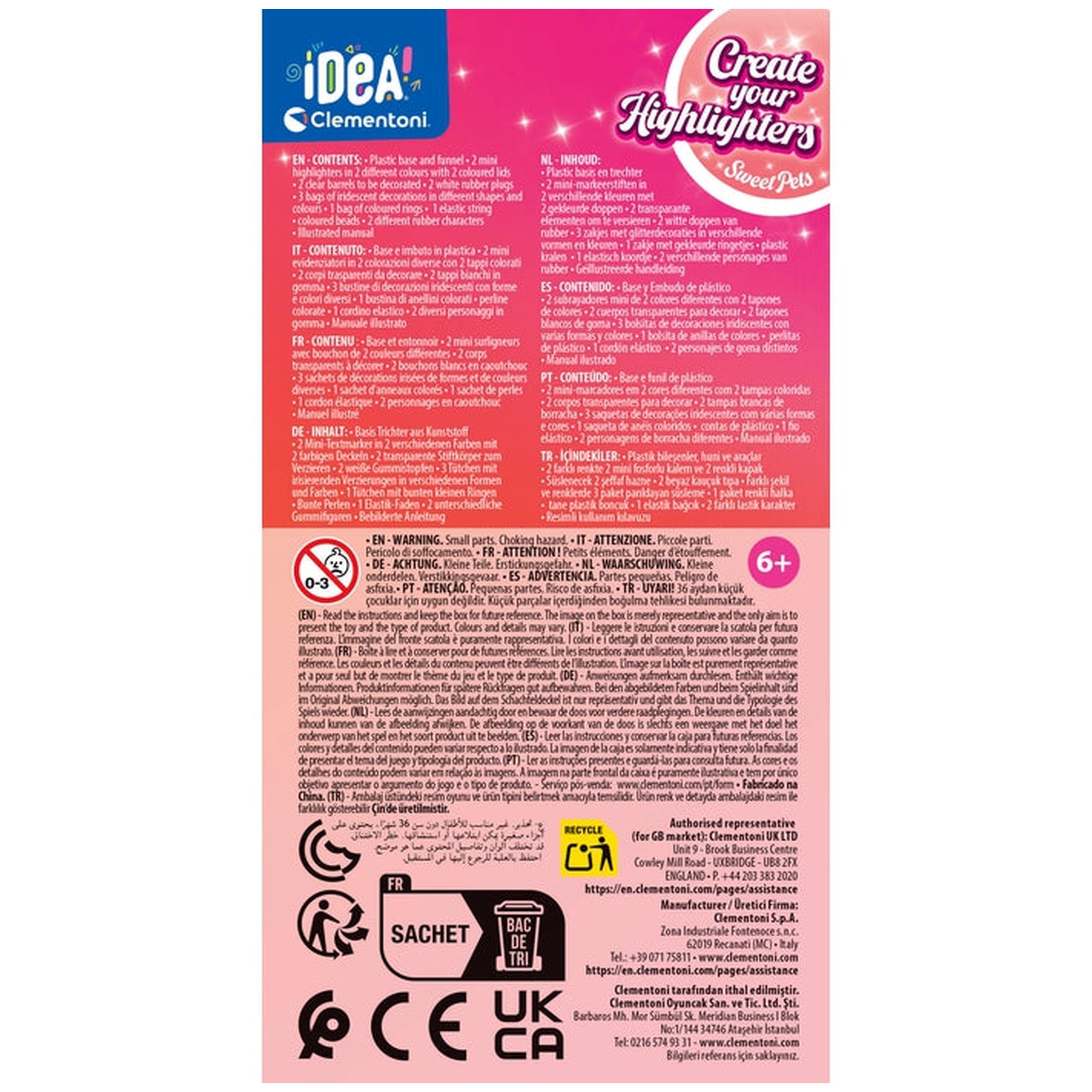 Clementoni - IDEA Crea i tuoi evidenziatori Sweet Pets - Arte e Fai da Te