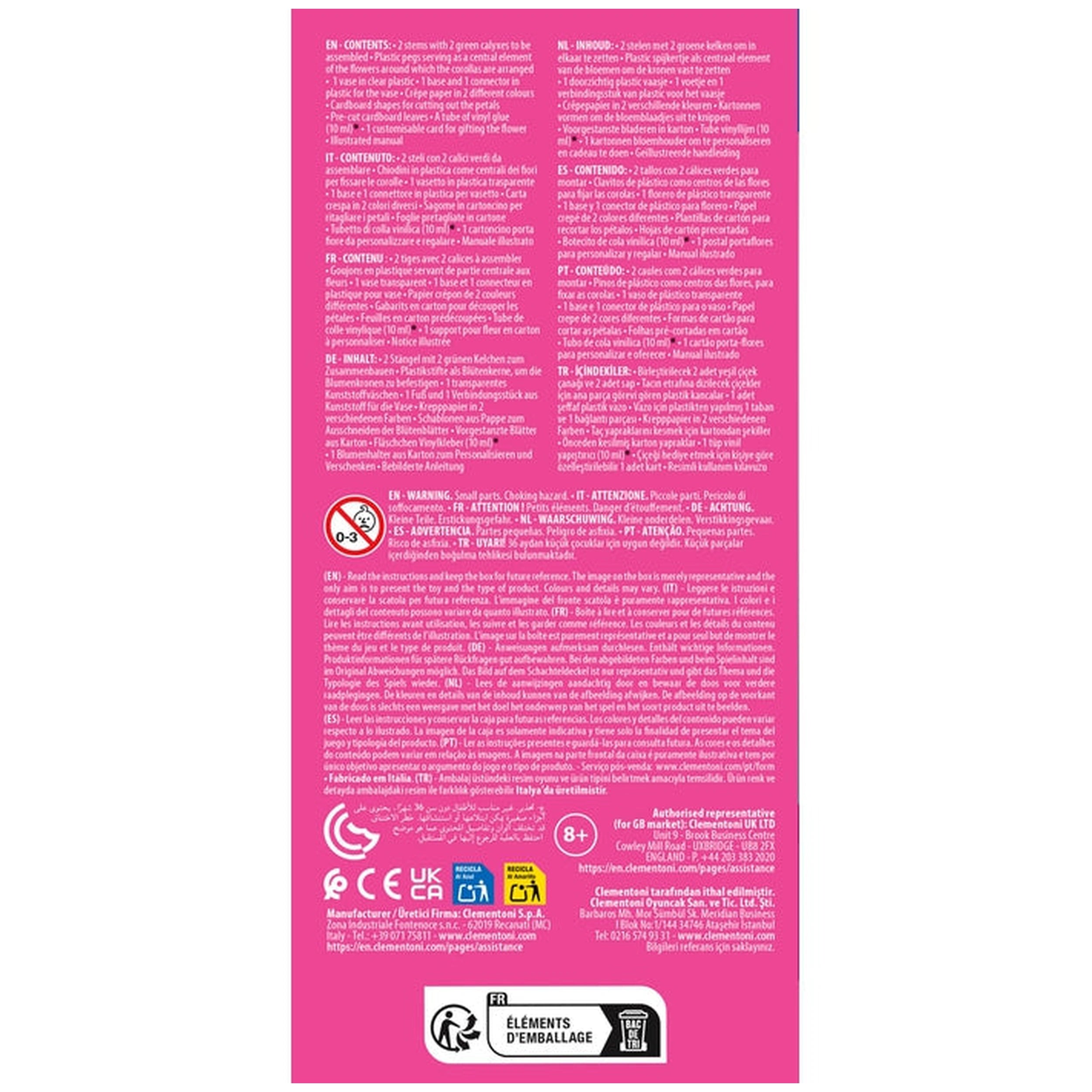 Clementoni - Idea Create Your Flowers Tulip - Arti e Mestieri Presentiamo il kit Clementoni Idea Create Your Flowers Tulip, un'esperienza unica e coinvolgente di arti e mestieri progettata per ispirare la creatività nei bambini dai 7 anni in su. Questo kit innovativo consente ai giovani artisti di assemblare e personalizzare due bellissimi tulipani, offrendo un'opportunità pratica per esplorare i propri talenti artistici divertendosi. Con i suoi colori vivaci e i vari componenti, questo kit è perfetto per stimolare l'immaginazione e incoraggiare l'autoespressione. Il kit tulipano Clementoni include tutto il necessario per creare splendidi design floreali. Ogni set è dotato di steli robusti, petali ritagliati e un supporto per fiori che può essere facilmente assemblato e decorato. Questo pacchetto completo assicura che i bambini abbiano tutti gli strumenti necessari per dare vita alle loro creazioni floreali. Il processo di assemblaggio è semplice, rendendolo accessibile ai giovani artigiani senza frustrazioni. Ciò che distingue questo kit è l'accento sulla personalizzazione. I bambini possono sperimentare con diverse combinazioni di colori e design, permettendo loro di creare tulipani unici che riflettono il loro stile personale. Questo aspetto del kit non solo migliora la creatività, ma aumenta anche la fiducia in sé mentre i bambini vedono le loro idee prendere forma. La possibilità di personalizzare i propri fiori li incoraggia a pensare fuori dagli schemi e a sviluppare le proprie abilità artistiche. Inoltre, il kit include un supporto per fiori personalizzabile, offrendo un'eccellente opportunità per i bambini di creare un regalo pensato per familiari o amici. Questa caratteristica aggiunge un tocco personale alle loro creazioni, rendendolo un progetto perfetto per compleanni, festività o semplicemente per rallegrare la giornata di qualcuno. L'atto di regalare un dono fatto a mano favorisce un senso di generosità e connessione, arricchendo ulteriormente l'esperienza di creazione. Progettato, sviluppato e prodotto in Italia, il kit Clementoni Idea Create Your Flowers Tulip riflette un'alta qualità artigianale e attenzione ai dettagli. I materiali utilizzati sono sicuri e durevoli, garantendo che i bambini possano godere della loro esperienza di creazione senza preoccupazioni. Questo impegno per la qualità lo rende una scelta affidabile per i genitori che desiderano offrire ai propri figli attività arricchenti e divertenti. In conclusione, il kit Clementoni Idea Create Your Flowers Tulip è più di un semplice progetto di arti e mestieri; è una porta d'accesso alla creatività, all'autoespressione e alla connessione personale. Incoraggia il viaggio artistico di tuo figlio e osserva come fiorisce con questo delizioso kit. Non perdere l'occasione di ispirare la creatività: ordina oggi il kit tulipano Clementoni e lascia che l'avventura della creazione abbia inizio!