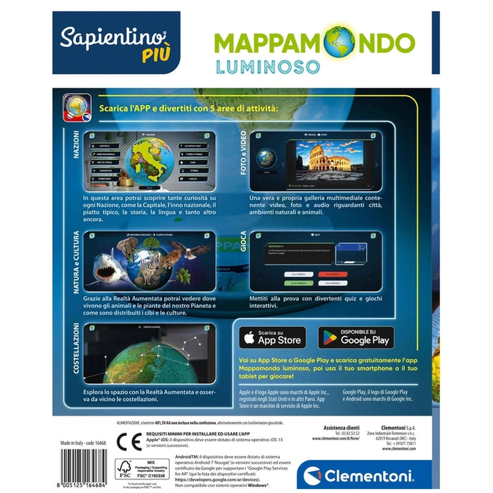 Clementoni - Mappamondo Luminoso Giocattoli Educativi - Edizione Italiana