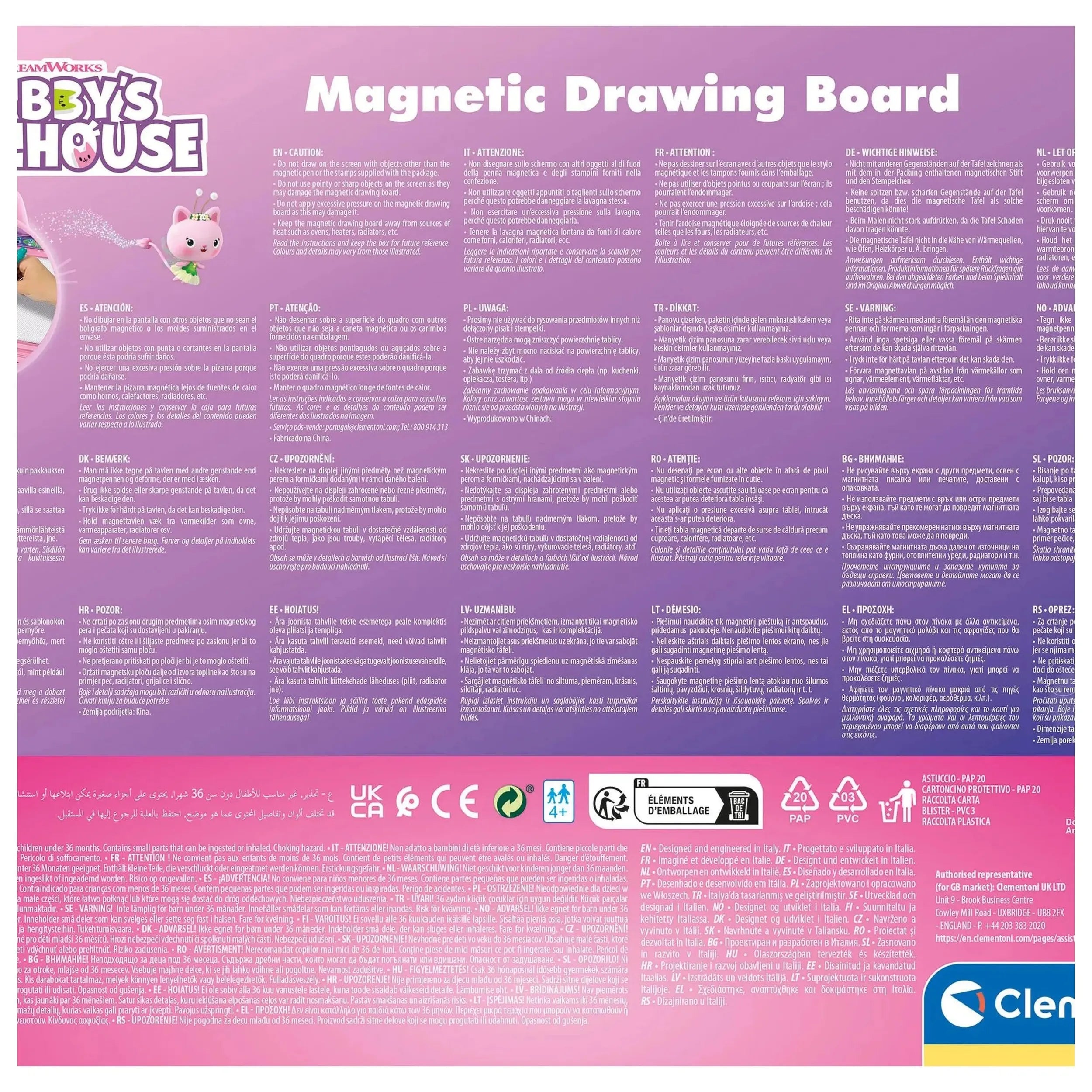 Clementoni - Gabby'S Dolls House Set di Arti e Mestieri con Lavagna Magnetica Presentiamo la **Lavagna Magnetica Gabby’s Dollhouse di Clementoni**, un affascinante set di arti e mestieri progettato per accendere l'immaginazione dei giovani artisti dai 4 anni in su. Questa innovativa lavagna invita i bambini a unirsi a Gabby e ai suoi amici fantasiosi in un viaggio creativo, trasformando ogni scarabocchio in un delizioso capolavoro. Con le sue caratteristiche coinvolgenti e il design vivace, questa lavagna magnetica è più di un semplice giocattolo; è una porta d'accesso all'esplorazione artistica e all'autoespressione. Il cuore della Lavagna Magnetica Gabby’s Dollhouse di Clementoni risiede nella sua superficie magnetica interattiva, splendidamente illustrata con i personaggi amati dello show popolare. Questo sfondo incantevole non solo ispira la creatività, ma incoraggia anche i bambini a interagire con i loro personaggi preferiti mentre creano. L'inclusione di tre stencil a forma geometrica consente di incorporare divertenti motivi e design, rendendo facile per le manine piccole aggiungere tocchi unici alle loro opere d'arte. Questa caratteristica promuove il gioco immaginativo mentre migliora le abilità artistiche. Progettata pensando ai giovani artisti, la penna magnetica inclusa con la lavagna vanta una presa ergonomica, garantendo comfort durante l'uso prolungato. La penna scivola senza sforzo sulla lavagna, permettendo ai bambini di esprimere liberamente le loro idee e emozioni. Con una generosa dimensione della lavagna di 38,5x30,5 cm e un'area scrivibile di 25,5x18,5 cm, c'è ampio spazio affinché la creatività fiorisca. Questa tela spaziosa incoraggia i bambini a esplorare varie tecniche di disegno, favorendo un senso di realizzazione con ogni creazione. Oltre alla gioia del disegno, la Lavagna Magnetica Gabby’s Dollhouse di Clementoni funge da prezioso strumento educativo. Mentre i bambini interagiscono con la lavagna, sviluppano abilità cruciali come la coordinazione occhio-mano, le abilità motorie fini e il pensiero creativo. Questo prodotto offre un'eccellente introduzione ai fondamenti del disegno e della scrittura, coltivando un apprezzamento duraturo per le arti. I genitori possono sentirsi sicuri sapendo che i loro figli non solo si divertono, ma stanno anche imparando abilità essenziali che saranno utili in futuro. Una delle caratteristiche distintive di questa lavagna magnetica è la sua superficie cancellabile, che consente una creatività infinita senza il disordine dei materiali artistici tradizionali. Il pratico meccanismo di scorrimento rende facile cancellare i disegni, mentre la maniglia pratica assicura la portabilità, rendendola perfetta per viaggi o incontri di gioco. Che si trovino a casa, in auto o a casa di un amico, i bambini possono portare le loro avventure artistiche ovunque vadano, assicurando che la creatività non conosca limiti. Consigliata per bambini dai 4 anni in su, la Lavagna Magnetica Gabby’s Dollhouse di Clementoni è un modo sicuro e coinvolgente per i giovani artisti di liberare la loro immaginazione. Per mantenere l'integrità della lavagna, è importante che i bambini utilizzino solo la penna magnetica e gli stencil forniti. Incoraggia tuo figlio a intraprendere un viaggio creativo pieno di divertimento e apprendimento. Lascia che i loro talenti artistici brillino con questa incantevole lavagna di Clementoni—ordina la tua oggi e guarda la loro creatività decollare!