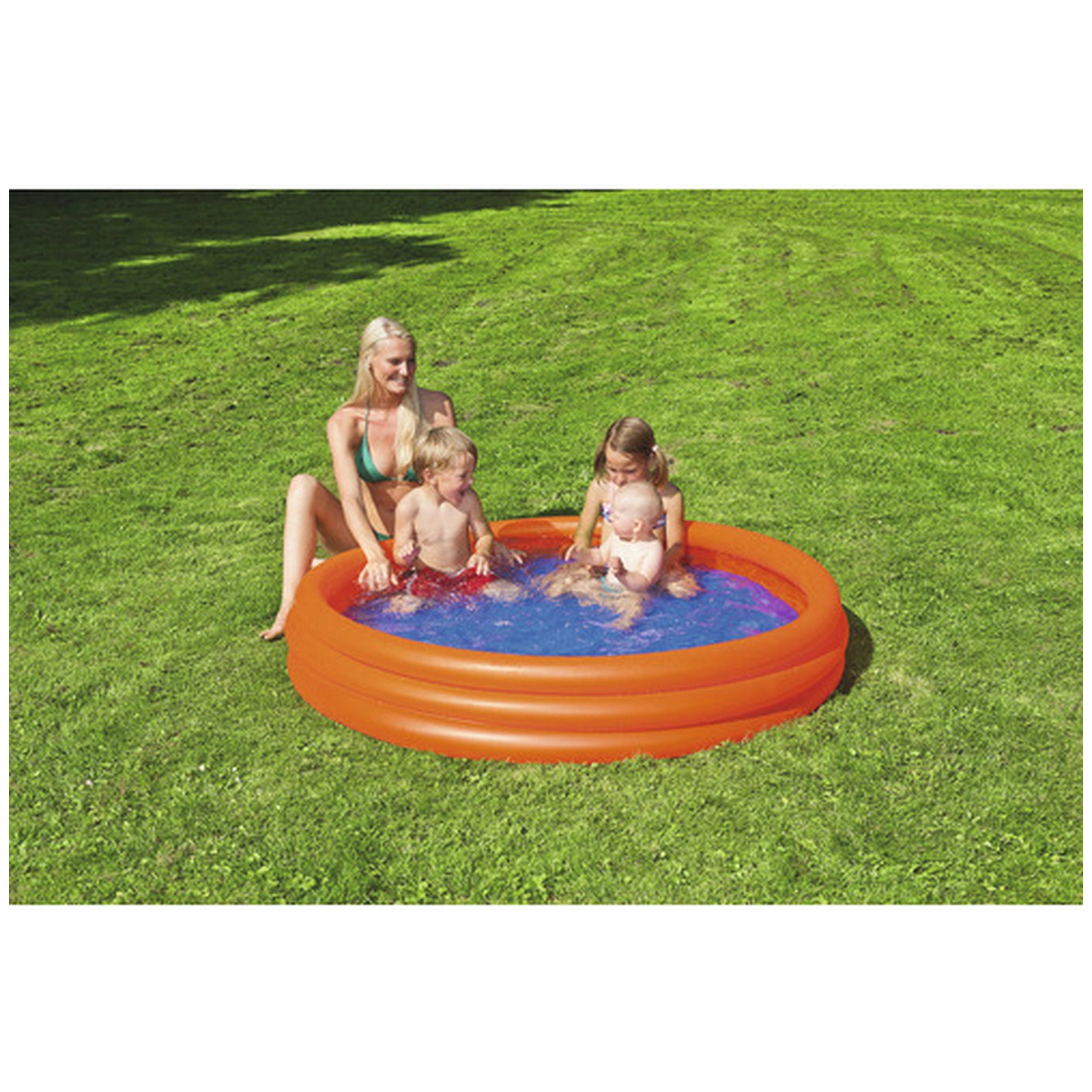 Introducing the Happy People Pool with Three Rings for Kids, a delightful inflatable pool designed to bring endless joy and excitement to your little ones. Measuring 122 x 122 x 23 cm, this vibrant pool is perfect for toddlers and preschoolers, providing a safe and fun environment for splashing around on those hot summer days. With its eye-catching red and blue colors, this pool is not only functional but also visually appealing, making it a fantastic addition to any backyard or outdoor space.