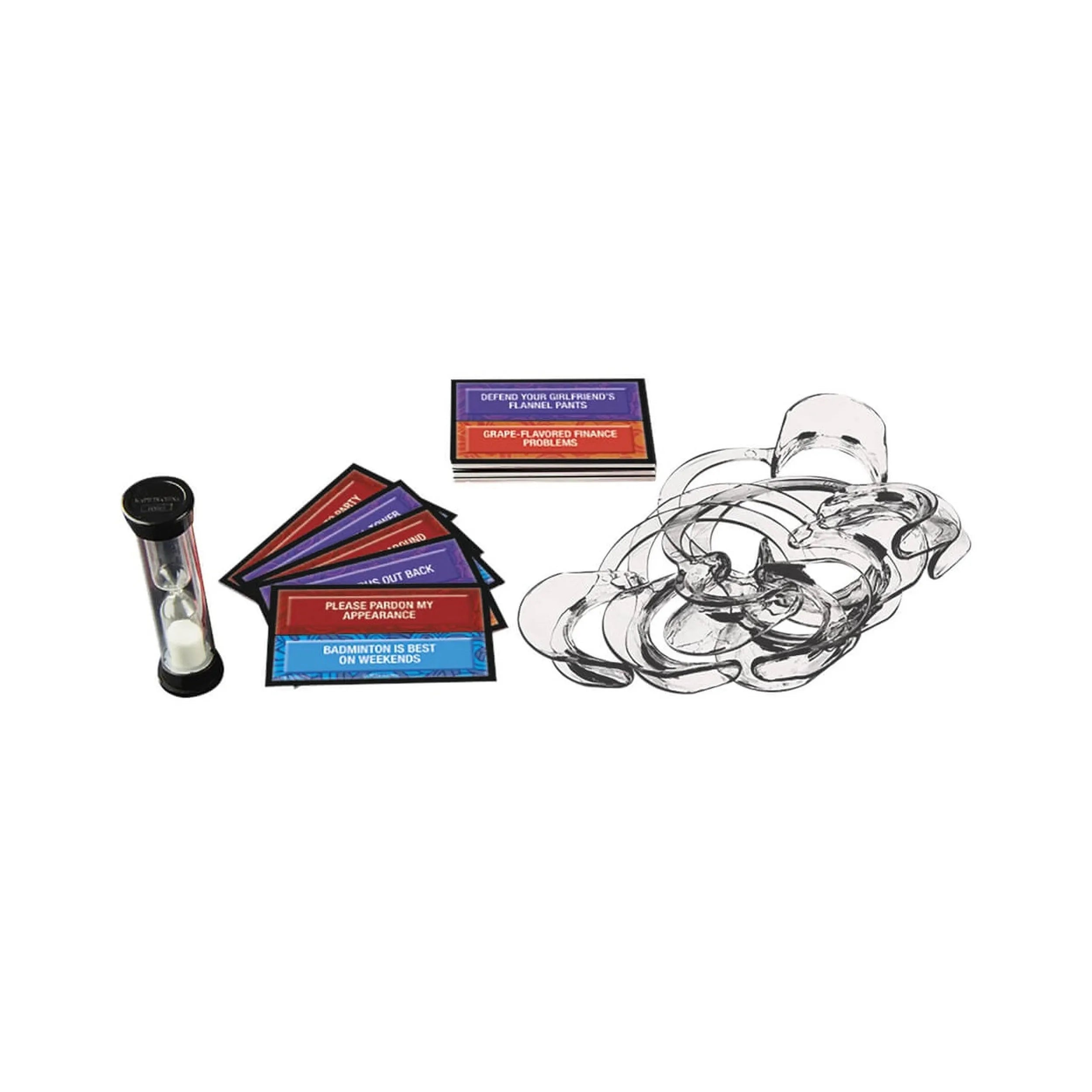 At the heart of the Klartex Board Game is the innovative "muzzle game" concept, where players wear a mouthpiece that makes it hilariously challenging to articulate phrases. As players attempt to read sentences from the cards aloud, their teammates must decipher the garbled words. The result? A whirlwind of laughter as everyone tries to guess the phrases, often leading to unexpected and side-splitting interpretations. This game is designed to break the ice and create a lively atmosphere, making it ideal for both new acquaintances and long-time friends.