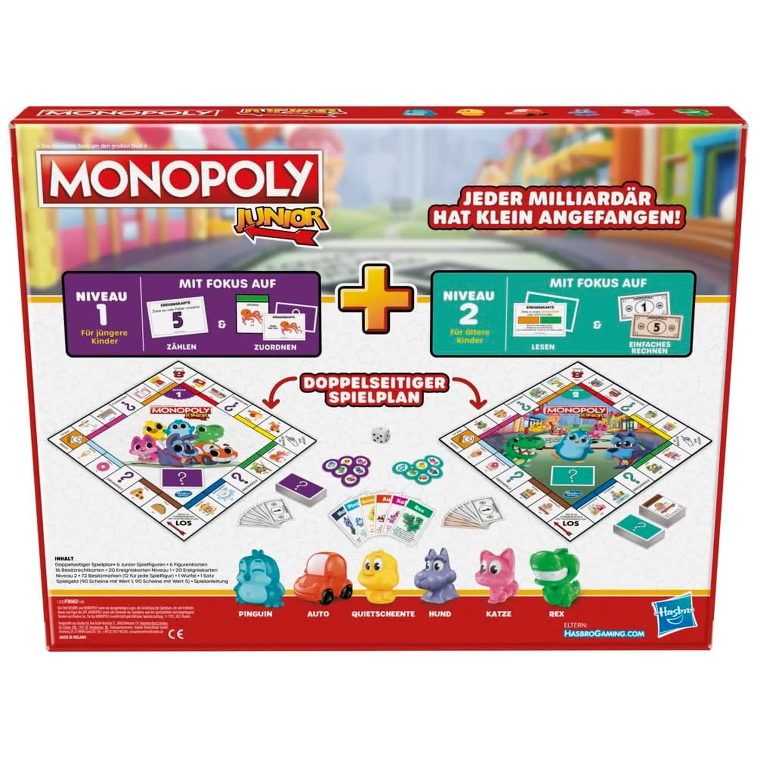 In conclusion, the Hasbro Monopoly Junior 2-in-1 Board Game - German Edition is an exceptional choice for parents seeking a fun, educational, and interactive game for their children. With its dual levels of play, engaging components, and focus on skill development, it is sure to become a beloved addition to any family game collection. Don't miss out on the opportunity to foster your child's love for learning and play—order your Monopoly Junior 2-in-1 Board Game today and watch as they embark on their journey to becoming a savvy little tycoon!