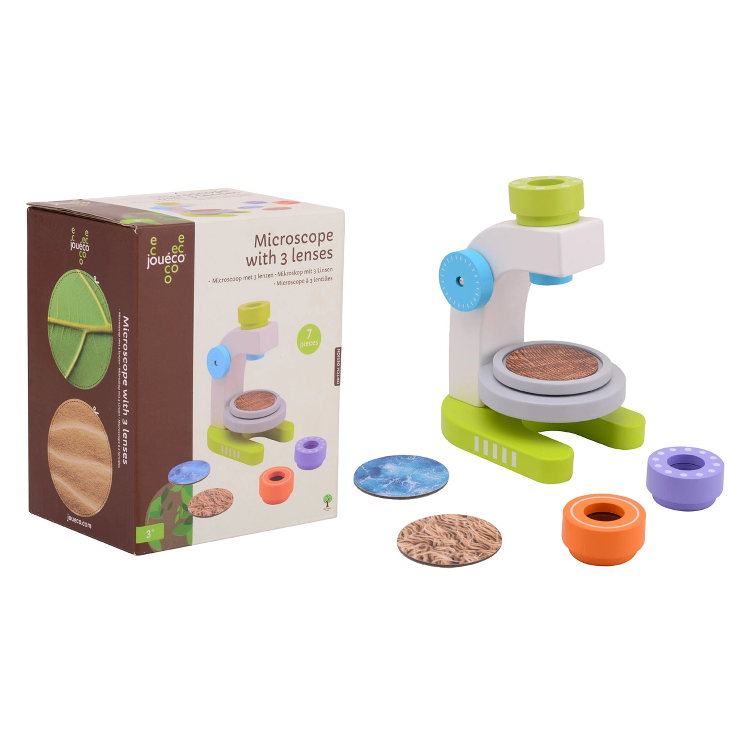 Johntoy - Microscopio in Legno con 3 Lenti - Professioni Fittizie e Gioco di Ruolo
