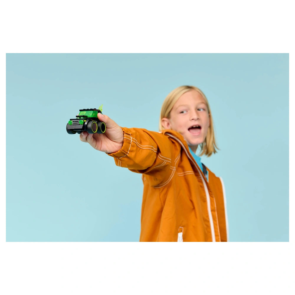LEGO - City Rides Gaming Race Car - Set di Costruzione per Giocattoli Presentiamo il LEGO® City Rides – Gaming Race Car (60484), un entusiasmante set di costruzione progettato per accendere l'immaginazione dei giovani costruttori dai 5 anni in su. Questo coinvolgente kit di auto modello è perfetto per i bambini appassionati di macchinine, videogiochi e gioco creativo. Con il suo design vivace e le caratteristiche emozionanti, questo set offre un'eccellente introduzione al dinamico mondo di LEGO City, dove avventura e creatività si incontrano. La LEGO City Rides Gaming Race Car presenta un design unico con motivi al neon che catturano l'essenza della cultura videoludica. Dotata di pneumatici in gomma sovradimensionati, di un dettagliato abitacolo del conducente e di un tubo di scarico infuocato, questa mini auto non è solo un giocattolo; è un portale verso racconti immaginativi. La minifigure Rides driver junior inclusa si adatta perfettamente dietro il volante, pronta a intraprendere avventure ad alta velocità nel regno del gioco di fantasia. Questo set incoraggia i bambini a esplorare la loro creatività mentre sviluppano abilità motorie fini attraverso la costruzione e il gioco. Costruire la Gaming Race Car è un gioco da ragazzi, grazie alle istruzioni di costruzione intuitive disponibili nell'app LEGO Builder. Questa guida digitale migliora l'esperienza di costruzione consentendo ai bambini di ingrandire, ruotare il modello in 3D e monitorare i loro progressi mentre assemblano i 64 pezzi. L'app trasforma il processo di costruzione in un'attività divertente e interattiva, rendendola ideale per i giovani costruttori che prosperano nell'apprendimento visivo. Questa piccola ma impattante auto giocattolo è un'ottima scelta regalo per compleanni, festività o semplicemente per fare un regalo. La sua dimensione compatta la rende facile da trasportare, permettendo ai bambini di portare le loro avventure videoludiche ovunque vadano. Che stiano giocando da soli o con amici, la LEGO City Rides Gaming Race Car promette ore di intrattenimento e gioco immaginativo. È una sorpresa perfetta per ragazzi e ragazze che amano l'azione frenetica e le sfide creative. Inoltre, questo set di auto da gioco fa parte della più ampia collezione LEGO City Rides, consentendo ai bambini di espandere le loro avventure di gioco integrandolo con altri set LEGO City (venduti separatamente). Questa compatibilità incoraggia il gioco collaborativo e migliora l'esperienza complessiva di costruzione, rendendolo un'aggiunta preziosa a qualsiasi collezione LEGO. In conclusione, il LEGO® City Rides – Gaming Race Car (60484) è più di un semplice set di costruzione; è un invito a un mondo di creatività e divertimento. Alimenta l'immaginazione di tuo figlio e guardalo sfrecciare in emozionanti avventure videoludiche. Non perdere l'opportunità di ispirare le giovani menti: ordina oggi la LEGO City Rides Gaming Race Car e lascia che la costruzione e il gioco abbiano inizio!