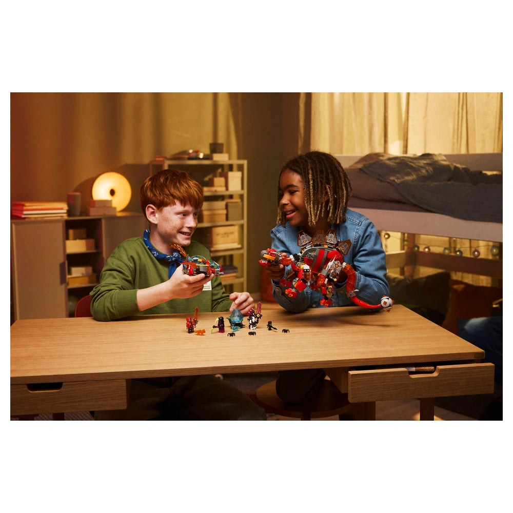 LEGO - Dreamzzz Dino Jet - Set di Costruzione Giocattoli Presentiamo il LEGO® DREAMZzz™ Dino Jet (71514), un affascinante set di costruzione progettato per accendere l'immaginazione di ragazzi e ragazze dai 9 anni in su. Questo innovativo kit di costruzione offre un'esperienza emozionante 2-in-1, permettendo ai giovani costruttori di creare un formidabile brontosauro o uno stegosauro pronto per la battaglia, ciascuno dotato della propria navetta spaziale. Con 1.007 pezzi, questo set promette ore di gioco creativo e avventure. Il brontosauro, una figura impressionante forgiata da roccia fusa, si erge alto con una massiccia coda a doppio ramo, pronto a spazzare via qualsiasi cosa si trovi nel suo cammino. La sua navetta spaziale staccabile aggiunge un elemento emozionante di esplorazione, incoraggiando i bambini a impegnarsi in racconti fantasiosi. D'altra parte, lo stegosauro corazzato è una feroce bestia da battaglia, caratterizzato da una coda a mazza infuocata e una costruzione di navetta spaziale separata, perfetta per difendersi da nemici immaginari. Entrambe le opzioni di dinosauro sono progettate per catturare e ispirare, rendendo questo set un must-have per ogni giovane appassionato di dinosauri. Inclusi nel set ci sono quattro minifigure LEGO® DREAMZzz™: Logan, Cooper, l'Imperatore degli Incubi e Arika. Questi personaggi danno vita all'azione, incoraggiando i bambini a impegnarsi nel gioco di ruolo e a creare le proprie emozionanti narrazioni. Il set presenta anche accessori collezionabili come spade, una falce e una lancia, permettendo battaglie epiche contro i tre ragni inclusi e la figura di Grimspawn. Inoltre, l'uovo di diamante che schiude due giocattoli Treasure Creature aggiunge un ulteriore livello di eccitazione e scoperta. Il LEGO® DREAMZzz™ Dino Jet non è solo un giocattolo; è un'esperienza di costruzione immersiva. Il set è fornito di istruzioni di costruzione guidate dalla storia, disponibili anche digitalmente nell'app LEGO Builder. Questa app consente ai bambini di ingrandire, ruotare e tenere traccia dei loro progressi, migliorando il loro percorso di costruzione e rendendolo ancora più coinvolgente. Questa funzione è particolarmente vantaggiosa per i giovani costruttori, poiché li aiuta a sviluppare abilità di problem-solving mentre si divertono. Questo set di costruzione è un'ottima idea regalo per compleanni o occasioni speciali, soprattutto per i bambini appassionati di dinosauri o della serie TV LEGO® DREAMZzz™. Incoraggia la creatività, il pensiero critico e il gioco immaginativo, rendendolo un'aggiunta preziosa alla collezione di giocattoli di qualsiasi bambino. I colori vivaci e i design intricati dei dinosauri e dei loro accessori sono sicuri di deliziare sia i bambini che i genitori. Non perdere l'occasione di ispirare creatività e avventura nel gioco di tuo figlio. Il LEGO® DREAMZzz™ Dino Jet (71514) è più di un semplice set di costruzione; è un portale verso un mondo di immaginazione. Ordina il tuo oggi e guarda tuo figlio intraprendere emozionanti avventure con i suoi nuovi amici dinosauri!
