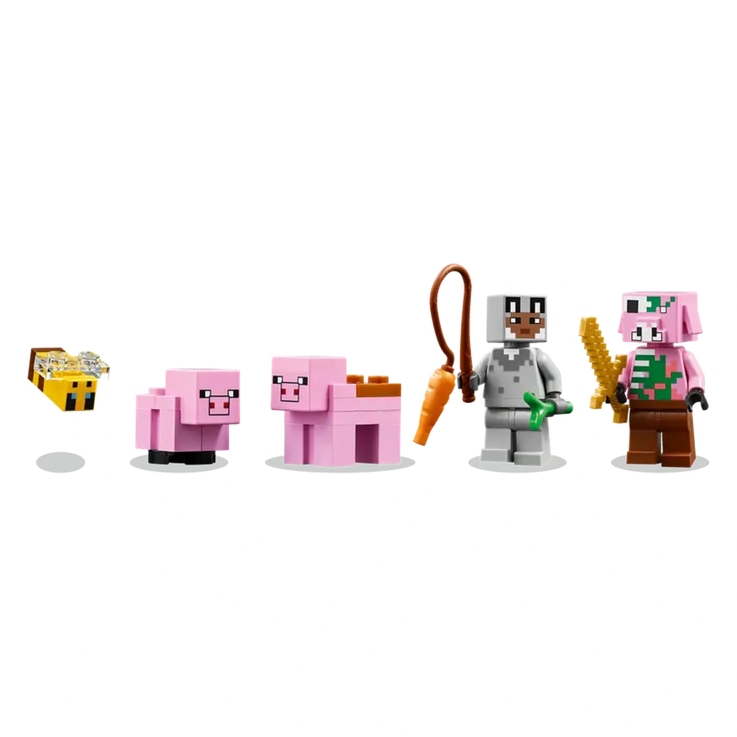 Inside the charming pig-shaped house, children will find a cozy bed, a bookcase, and a crafting table, all designed to inspire creativity and imaginative play. These authentic details reflect the essence of Minecraft, where crafting and building are central to the gameplay experience. The house serves as a safe haven from the zombified piglin, who adds an element of challenge and excitement to the play scenario. This dynamic encourages kids to think critically and strategize their next moves, enhancing their problem-solving skills while they play.