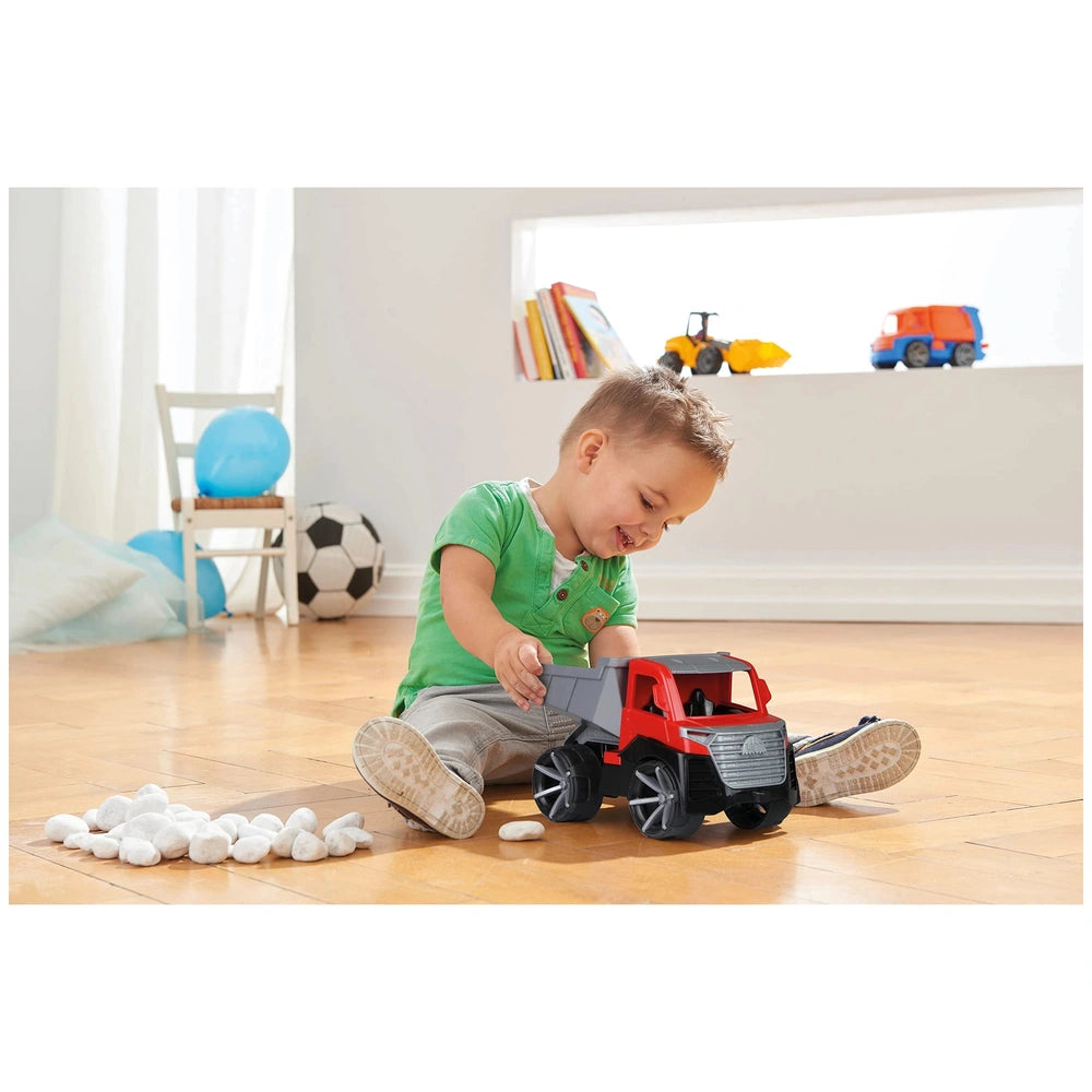 Introducing the Lena TRUXX Kipper, a robust and versatile play vehicle designed for children aged two and above. This exceptional toy, measuring 29 cm in length, is crafted from high-quality, durable plastic, ensuring it withstands the rigors of both indoor and outdoor play. The vibrant red and gray color scheme not only captures the attention of young ones but also adds a touch of excitement to their playtime adventures.