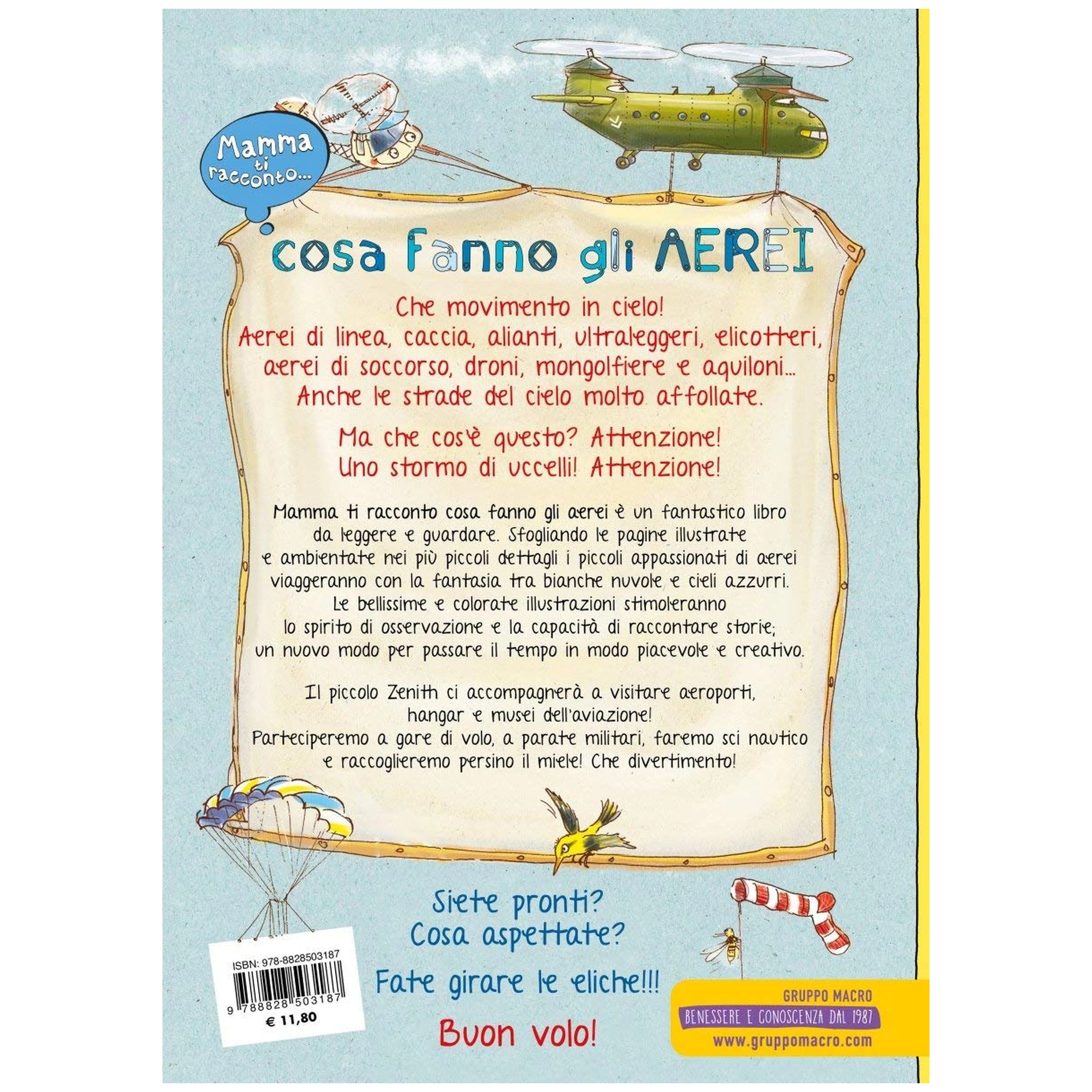 MACRO JUNIOR - Mamma Ti Racconto Cosa Fanno Gli Aerei - Libri Presentiamo "Mamma ti racconto... cosa fanno gli aerei", un libro affascinante progettato specificamente per i giovani appassionati di aviazione. Questa deliziosa edizione italiana invita i bambini a esplorare il mondo affascinante degli aerei attraverso illustrazioni vivaci e narrazioni coinvolgenti. Perfetto per bambini dai tre anni in su, questo libro rappresenta un'eccellente introduzione ai vari tipi di aerei, tra cui aerei di linea, caccia, alianti, ultraleggeri, elicotteri, aerei da soccorso, droni, mongolfiere e aquiloni. Man mano che i bambini sfogliano le pagine, saranno trasportati in un cielo vivace pieno di movimento ed eccitazione. Il libro non solo mostra i diversi aerei, ma introduce anche i giovani lettori all'attività frenetica nei cieli. Con ogni illustrazione, i bambini impareranno a identificare vari mezzi volanti mentre migliorano le loro capacità di osservazione. L'arte dettagliata li incoraggia a coinvolgere la loro immaginazione, rendendo l'esperienza di lettura sia educativa che divertente. Il personaggio affascinante di Zenith guida i lettori attraverso una varietà di avventure legate all'aviazione. Dalla visita agli aeroporti e ai hangar all'esplorazione dei musei dell'aviazione, i bambini acquisiranno una maggiore apprezzamento per il mondo del volo. La narrazione è progettata per suscitare curiosità, spingendo i bambini a fare domande e condividere i loro pensieri su ciò che vedono. Questo approccio interattivo favorisce l'amore per la narrazione e la creatività, rendendolo una scelta ideale per genitori ed educatori. Oltre a imparare sugli aerei, i giovani lettori parteciperanno a emozionanti attività come competizioni di volo, parate militari, sci d'acqua e persino raccolta di miele! Ogni pagina è piena di divertimento ed eccitazione, assicurando che i bambini rimangano coinvolti durante il loro viaggio. Questo libro non è solo un materiale di lettura; è un'avventura che incoraggia l'esplorazione e la scoperta. "Mamma ti racconto... cosa fanno gli aerei" è più di un semplice libro; è una porta d'accesso alla comprensione delle meraviglie dell'aviazione. La combinazione di belle illustrazioni e narrazione coinvolgente lo rende un'aggiunta perfetta alla biblioteca di ogni bambino. I genitori apprezzeranno il valore educativo, mentre i bambini si delizieranno negli scenari immaginativi presentati nelle sue pagine. Non perdere l'opportunità di ispirare la prossima generazione di aviatori! Prendi la tua copia di "Mamma ti racconto... cosa fanno gli aerei" oggi stesso e lascia che tuo figlio intraprenda un viaggio indimenticabile tra i cieli. Questo libro diventerà sicuramente un favorito prezioso, accendendo una passione duratura per l'aviazione e la narrazione.