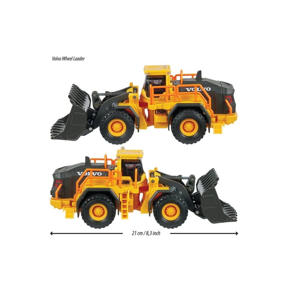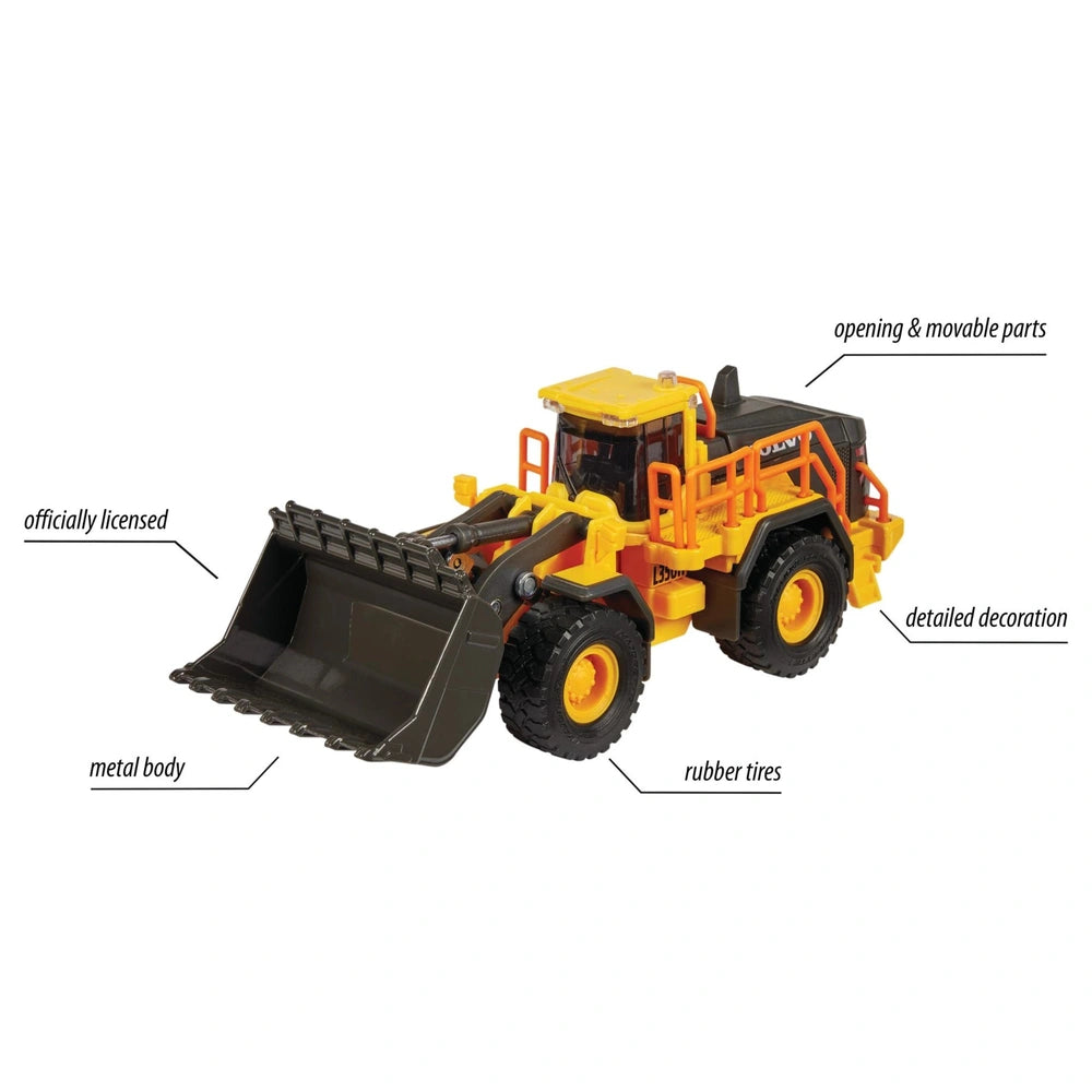 Crafted with a durable metal body and equipped with large rubber wheels, this wheel loader is built to withstand the rigors of playtime. The movable excavator bucket allows children to tilt, lift, and lower with ease, promoting the development of fine motor skills and hand-eye coordination. Whether they are moving sand, building blocks, or other toys, this vehicle provides endless opportunities for creative construction site adventures.