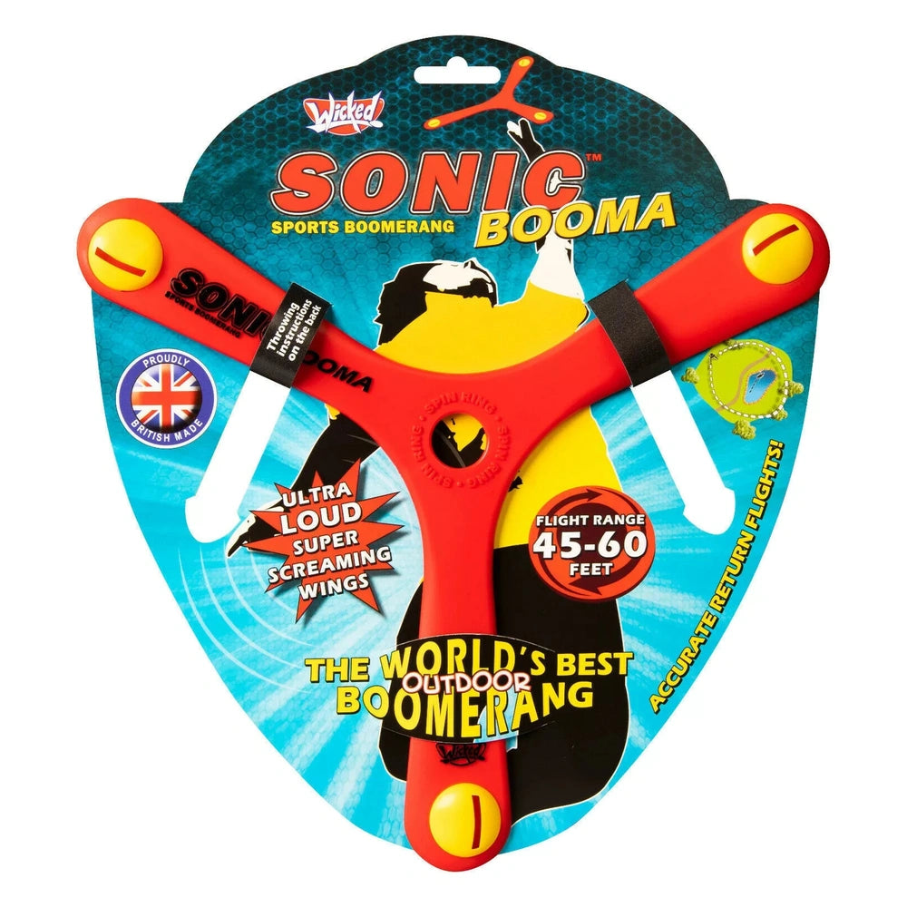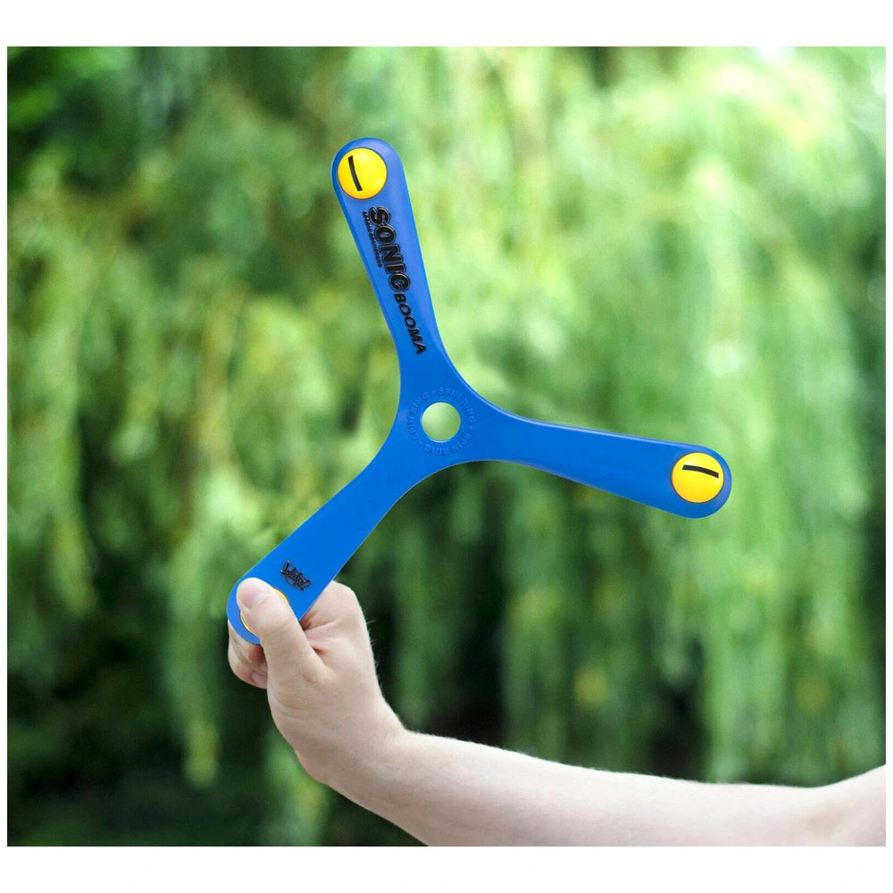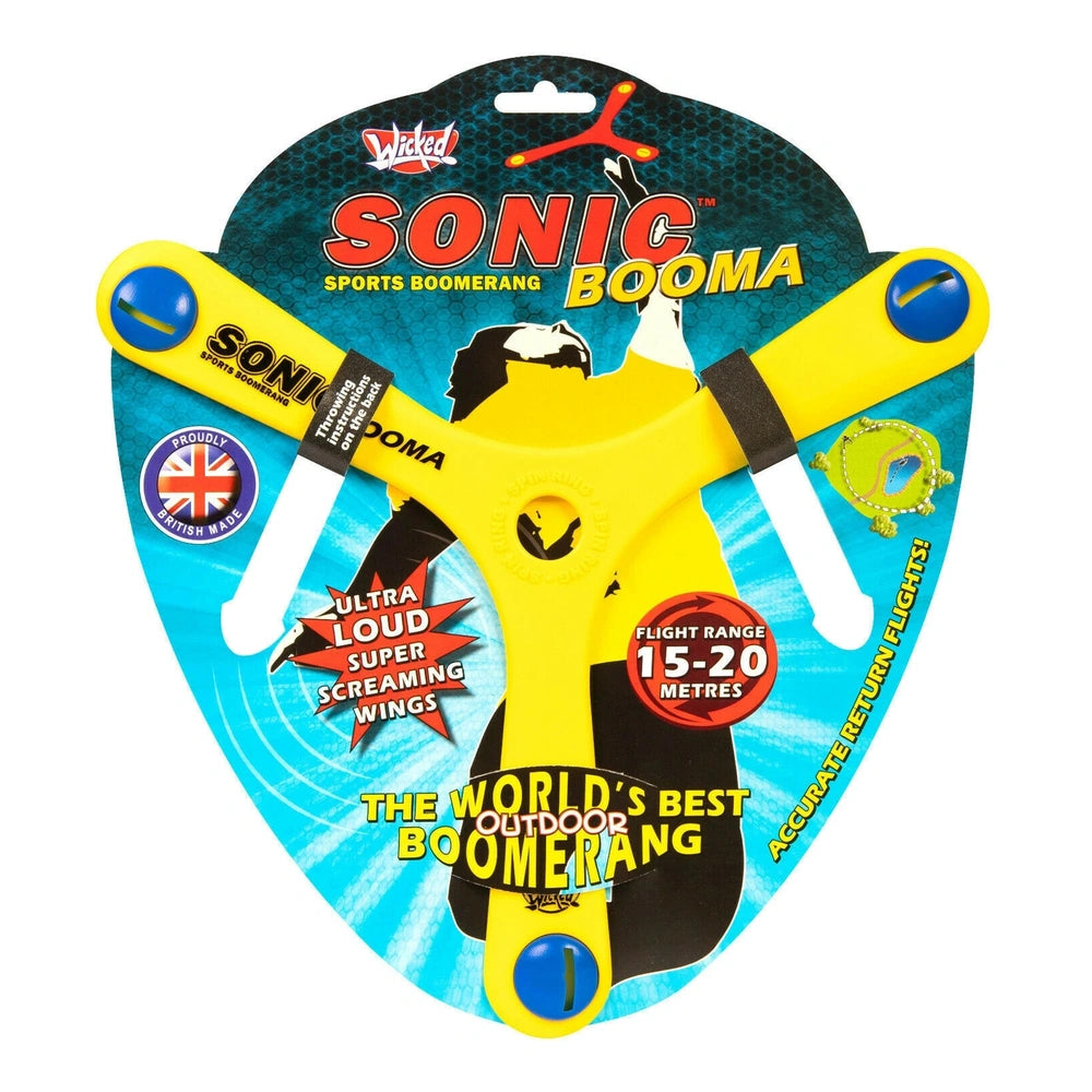 Crafted from high-quality Memorang polymer, the Wicked Sonic Booma is engineered for durability and performance. Its unique design allows it to whistle loudly as it soars through the air, captivating onlookers and adding an auditory thrill to the visual spectacle. This feature not only enhances the fun but also helps young throwers gauge their throws, making it easier to learn and improve their skills. With a flight range of 15-20 meters, this boomerang is perfect for both beginners and seasoned throwers looking to refine their technique.