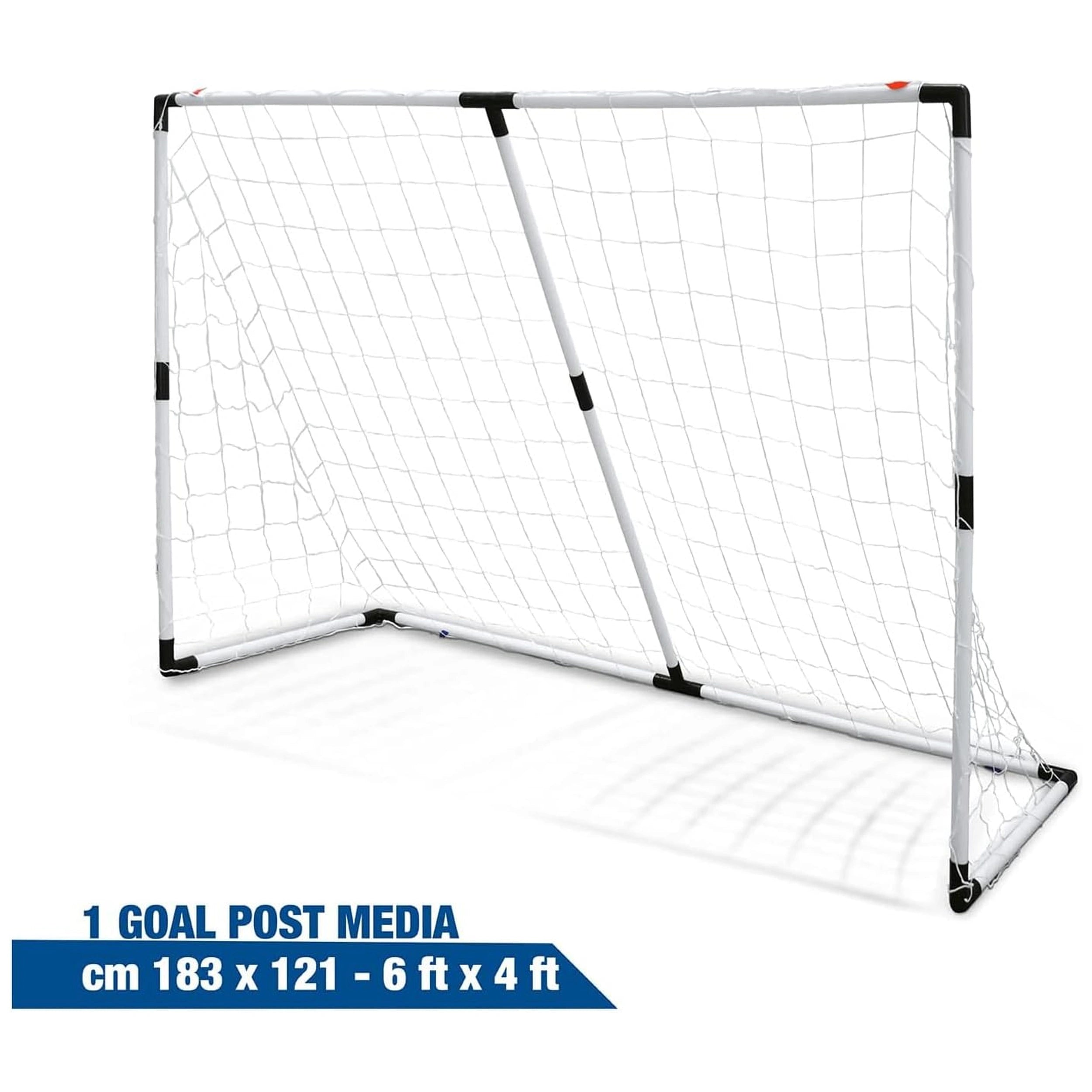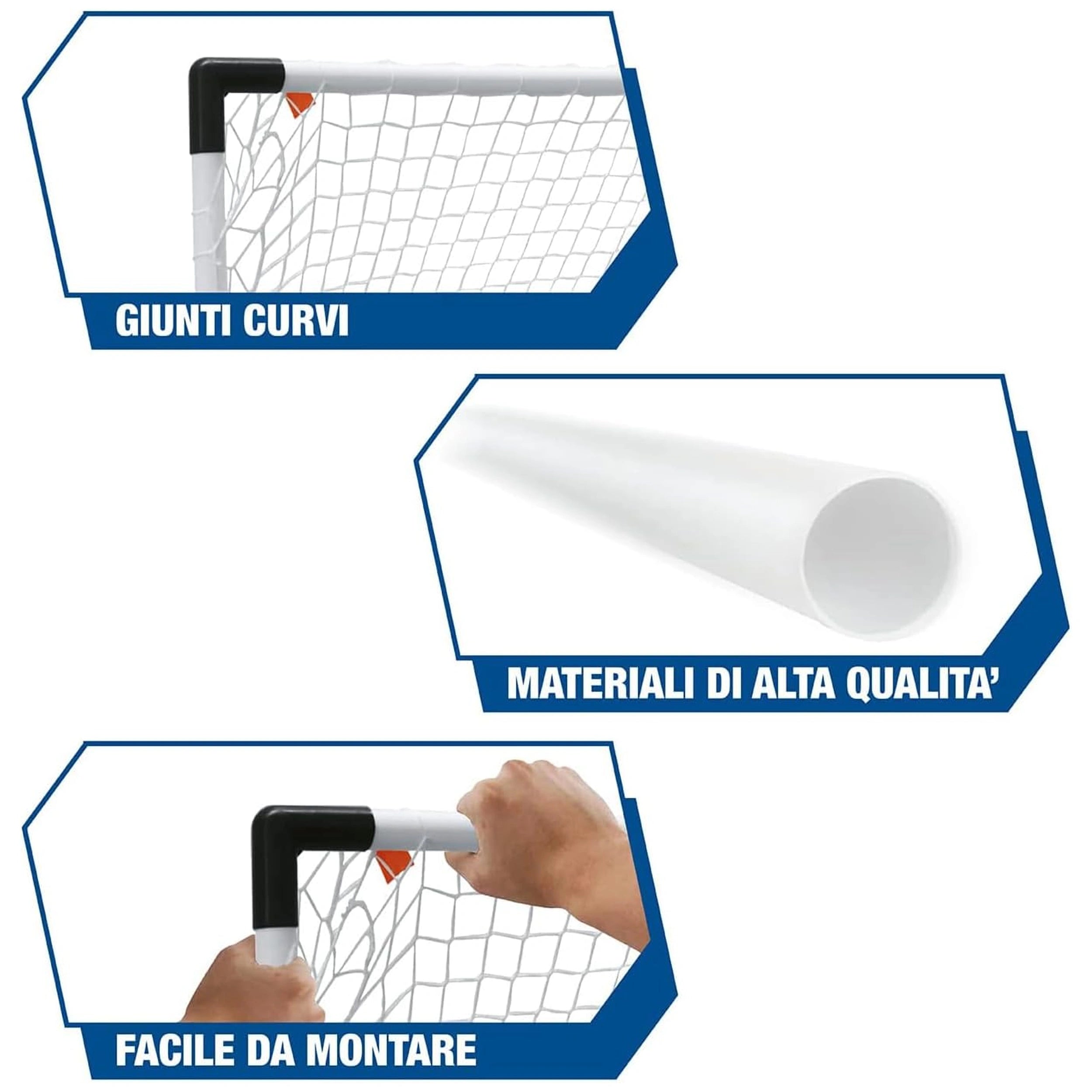 Mondo - Porta da Calcio 2 in 1 - Giocattoli Sportivi Presentiamo il Set Porta da Calcio 2 in 1 di Mondo – il giocattolo sportivo definitivo progettato per i giovani appassionati di calcio desiderosi di giocare ovunque. Questo set innovativo è perfetto per i bambini che vogliono godere dell'emozione del calcio in vari contesti, sia nel giardino, al parco, o anche al chiuso. Con il suo design versatile, la Porta da Calcio Mondo consente ai bambini di scegliere tra una grande porta che misura 183 x 121 cm o due porte più piccole, ciascuna di 91,5 x 63 cm. Questa flessibilità assicura che i bambini possano adattare il loro gioco allo spazio disponibile, rendendo ogni partita un'esperienza indimenticabile. Il Set Porta da Calcio 2 in 1 di Mondo non riguarda solo le opzioni di dimensione; include anche componenti essenziali che migliorano l'esperienza di gioco complessiva. Le strutture delle porte sono progettate per un facile montaggio e smontaggio, consentendo ai bambini di allestire rapidamente ed efficientemente il loro campo da calcio. Che stiano organizzando una partita amichevole con gli amici o praticando le loro abilità di tiro, questo set fornisce tutto il necessario per creare un ambiente calcistico realistico direttamente a casa. Incluso nel set c'è un pallone da calcio di alta qualità, specificamente progettato per la durata e il rimbalzo ottimale su erba o superfici lisce. Questo assicura che i giovani giocatori possano godere di un'esperienza di gioco costante, sia che stiano dribblando, passando o tirando. Inoltre, il set viene fornito con una pompa, che consente ai bambini di mantenere il loro pallone da calcio gonfiato e pronto all'azione in ogni momento. Questa inclusione pensata significa che i bambini possono concentrarsi sul loro gioco senza preoccuparsi di problemi con l'attrezzatura. La sicurezza e la qualità sono fondamentali nel design del Set Porta da Calcio Mondo. Realizzato con materiali robusti, questo giocattolo sportivo è costruito per resistere alle sollecitazioni del gioco attivo, garantendo longevità e affidabilità. I genitori possono avere la tranquillità di sapere che i loro figli stanno giocando con un prodotto che soddisfa elevati standard di sicurezza, incoraggiando al contempo l'attività fisica e il lavoro di squadra. Il Set Porta da Calcio 2 in 1 di Mondo non è solo un giocattolo; è un investimento nello sviluppo fisico e nelle abilità sociali di tuo figlio. Giocare a calcio aiuta a migliorare la coordinazione, l'equilibrio e il lavoro di squadra, rendendolo un'ottima scelta per i giovani atleti. Che stiano affinando le loro abilità o semplicemente godendo di una giornata divertente all'aperto, questo set offre una piattaforma per la crescita e il divertimento. Non perdere l'opportunità di migliorare il tempo di gioco di tuo figlio con il Set Porta da Calcio 2 in 1 di Mondo. Ordina ora e guarda il tuo piccolo calciatore segnare gol e creare ricordi duraturi. Con il suo facile montaggio, materiali durevoli e caratteristiche complete, questo set diventerà sicuramente un favorito sia per i bambini che per i genitori. Preparati a ore infinite di divertimento ed emozione!