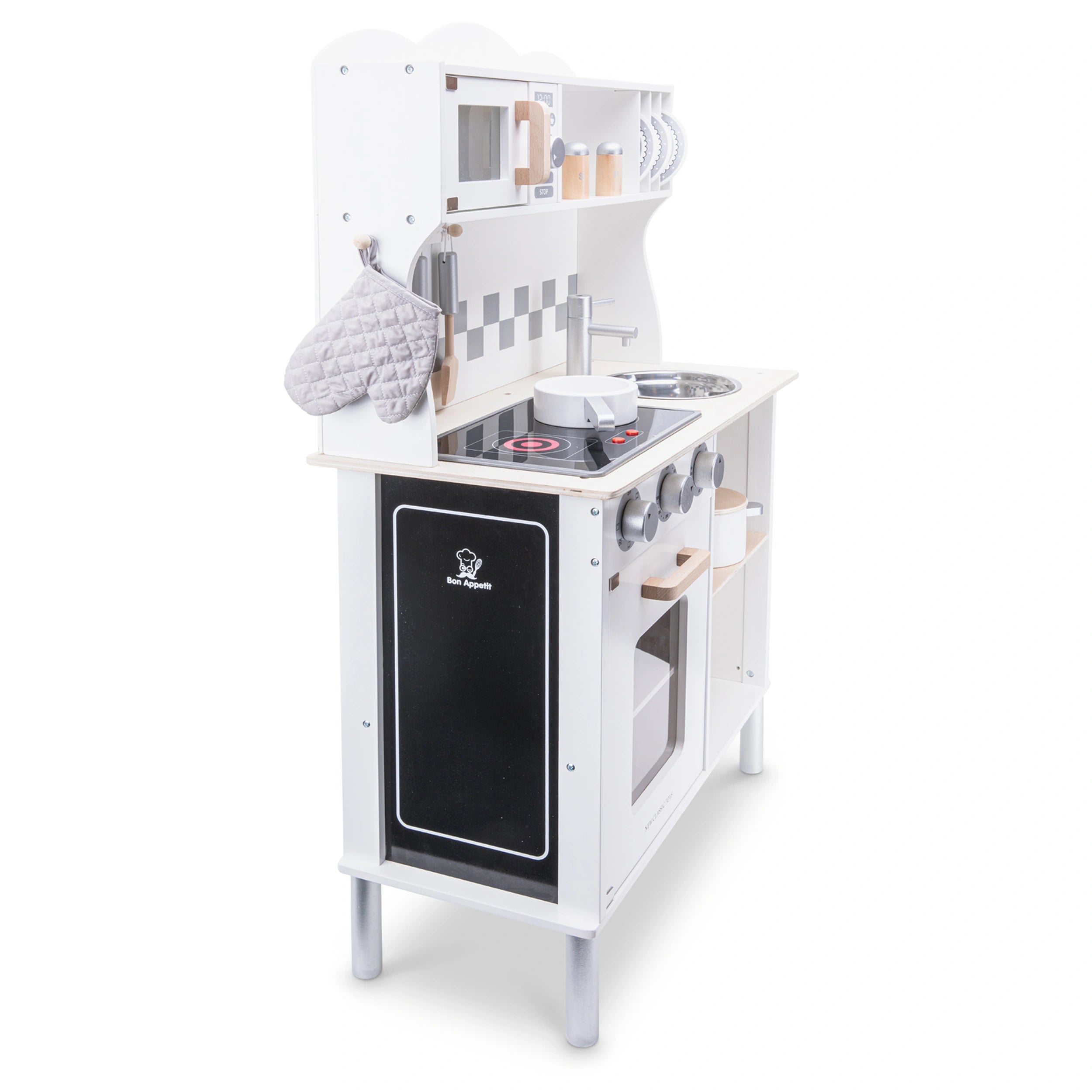 The New Classic Toys Kitchenette is equipped with everything a budding chef needs to whip up delicious pretend meals. Included in this set are a pot with a lid, a frying pan, three cooking utensils, an oven glove, a towel, and a salt and pepper pot. Each accessory is crafted with care, ensuring durability and safety for little hands. The realistic features of this kitchen set allow children to mimic real cooking experiences, fostering their imagination and creativity as they create their own culinary masterpieces.