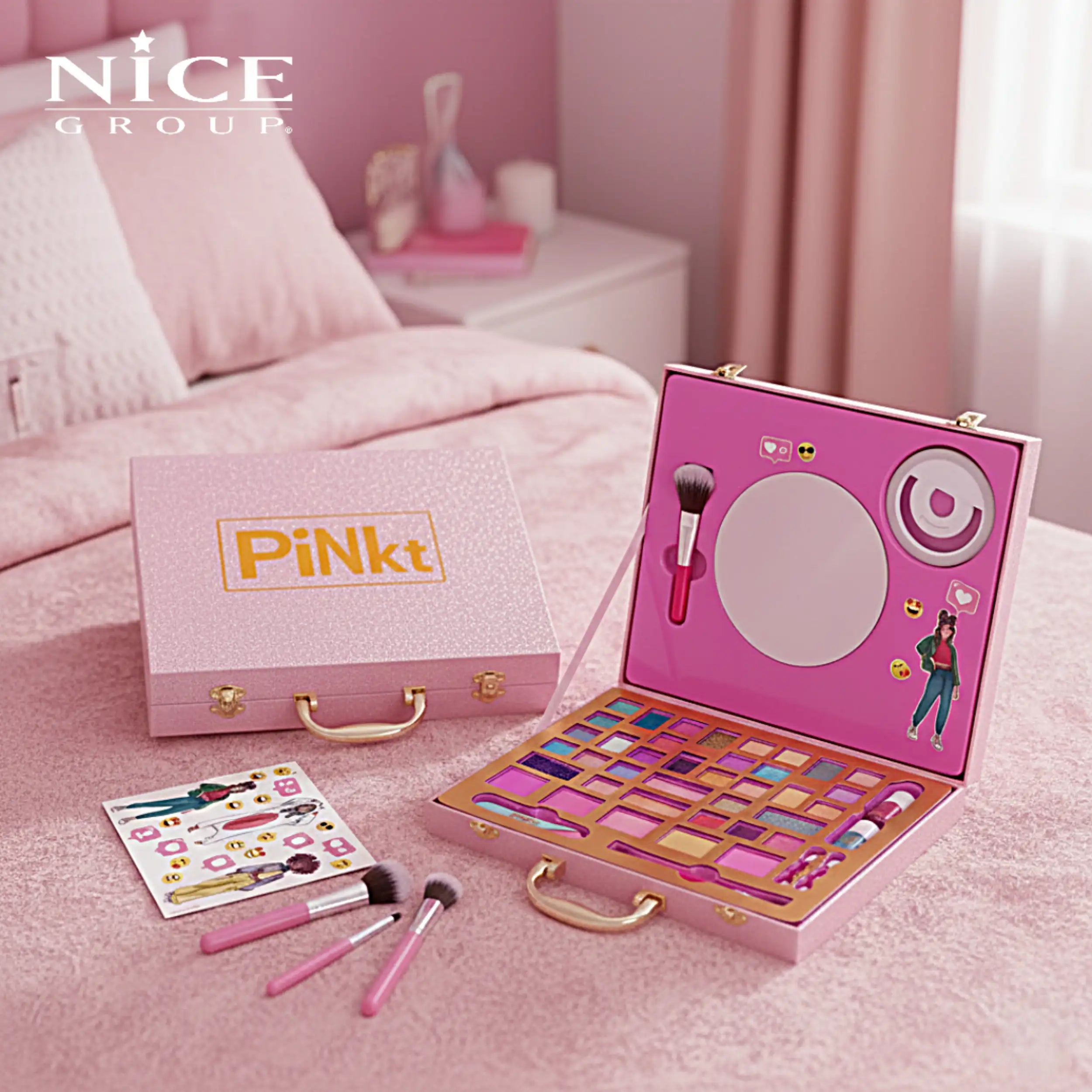 The Nice - Pink it Selfie Ring Suitcase is equipped with an impressive array of makeup products, ensuring that you have everything you need to create stunning looks. Inside, you will find a selfie ring flash that easily attaches to your smartphone, allowing you to capture flawless selfies with perfect lighting. This feature is particularly beneficial for those who love to share their makeup creations on social media, ensuring that every photo showcases your artistry in the best light.