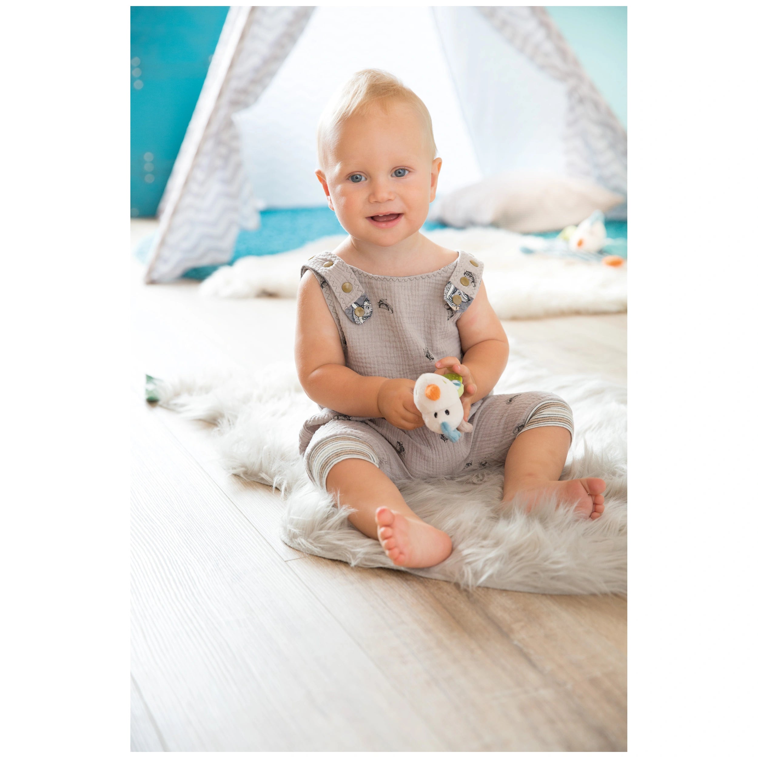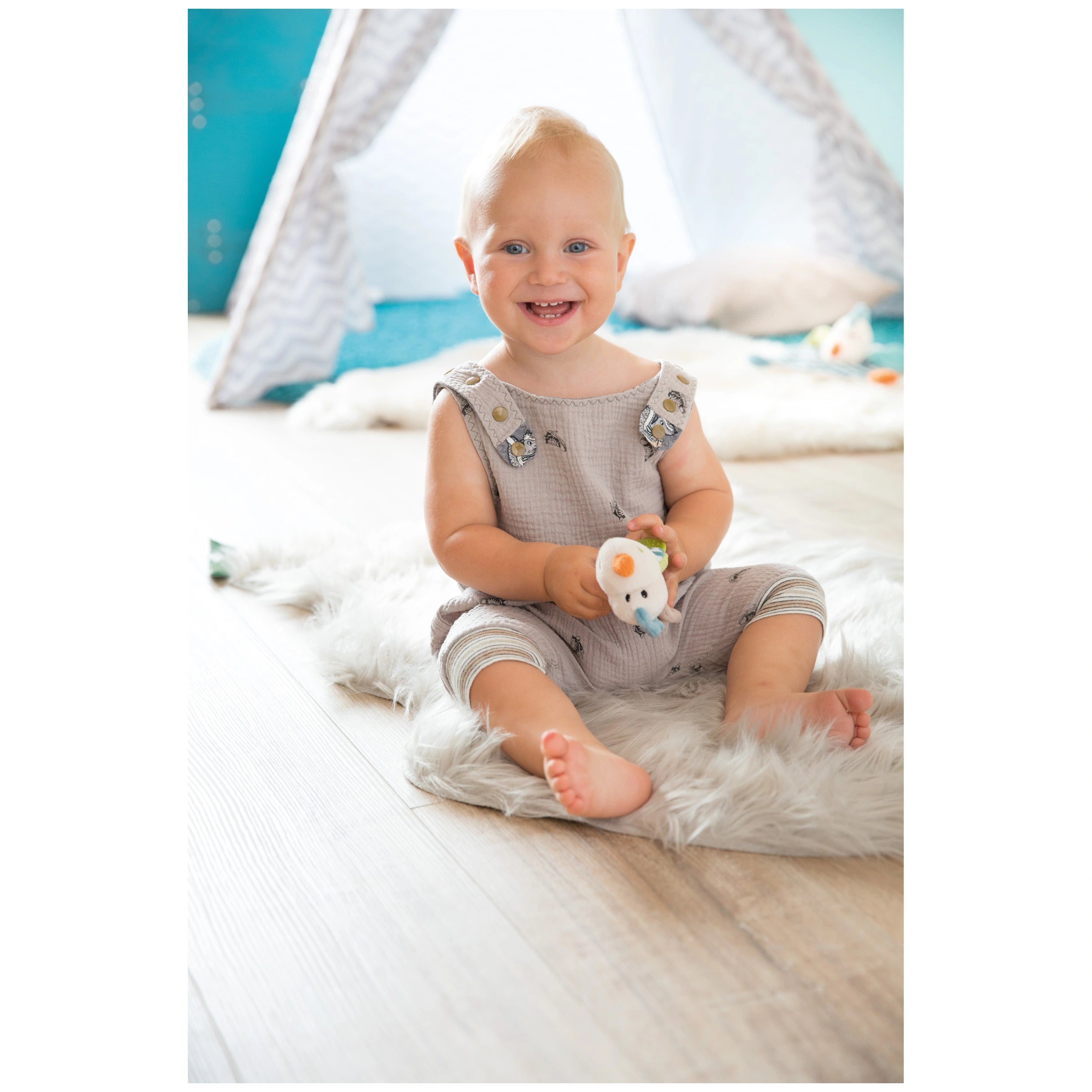 Introducing the NICI Dragon Dragilu with Teething Ring, a delightful companion designed to ease the teething process for your little one. This charming plush dragon not only serves as a cuddly friend but also plays a crucial role in supporting sensory development during this challenging phase of infancy. Crafted with care, the NICI Dragon Dragilu is perfect for babies aged six months and older, making it an essential addition to your baby's collection of toys.