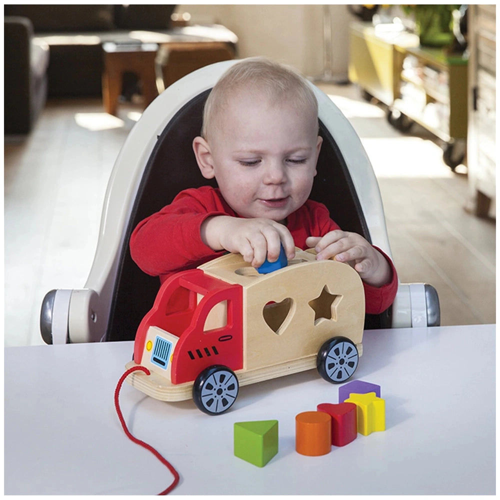 Presentiamo il New Classic Toys Shape Sorter Truck, un coinvolgente e educativo giocattolo per attività per bambini progettato per bambini di 12 mesi e oltre. Questo giocattolo in legno, splendidamente realizzato, combina divertimento e apprendimento, rendendolo un'aggiunta essenziale al tempo di gioco del tuo bambino. Il design unico del camion non solo cattura l'immaginazione, ma funge anche da strumento pratico per sviluppare abilità fondamentali nei bambini piccoli. Il Shape Sorter Truck presenta tre lati con fori che consentono ai bambini di ordinare sei blocchi colorati nelle loro forme corrispondenti. Questo gioco interattivo incoraggia i bambini a esplorare colori e forme, migliorando al contempo la loro coordinazione mano-occhio e le abilità motorie fini. Mentre manipolano i blocchi, si impegnano anche nella risoluzione dei problemi, favorendo lo sviluppo cognitivo in un ambiente ludico. Una delle caratteristiche distintive di questo giocattolo è la sua durata. Realizzato in legno 100% certificato FSC®, il Shape Sorter Truck è progettato per resistere alle sollecitazioni del gioco. Le robuste ruote in legno garantiscono che il camion possa essere trainato in varie avventure, rendendolo un compagno perfetto per passeggiate all'aperto. Il cordino rosso brillante consente ai più piccoli di trainare facilmente il loro camion, aggiungendo un elemento di mobilità al loro gioco. Mentre i bambini riempiono il camion con i blocchi e poi lo svuotano attraverso il portellone posteriore, sperimentano la gioia della ripetizione e del dominio. Questo ciclo di gioco non solo intrattiene, ma rinforza anche la loro comprensione delle forme e del conteggio. Il New Classic Toys Shape Sorter Truck non è solo un giocattolo; è una porta d'accesso all'apprendimento attraverso il gioco, rendendolo un regalo ideale per compleanni o occasioni speciali. I genitori possono sentirsi sicuri del loro acquisto, sapendo che questo giocattolo è progettato tenendo conto della sicurezza e della sostenibilità. L'uso di materiali ecologici si allinea ai valori della genitorialità moderna, garantendo che i bambini possano giocare in sicurezza, essendo anche gentili con il pianeta. Questo giocattolo educativo è una perfetta fusione di divertimento, apprendimento e consapevolezza ambientale. Non perdere l'opportunità di arricchire il tempo di gioco del tuo bambino con il New Classic Toys Shape Sorter Truck. Investi nel loro sviluppo e osserva come crescono e imparano attraverso il gioco. Ordina ora e regala al tuo bambino il dono dell'esplorazione, della creatività e del divertimento senza fine!