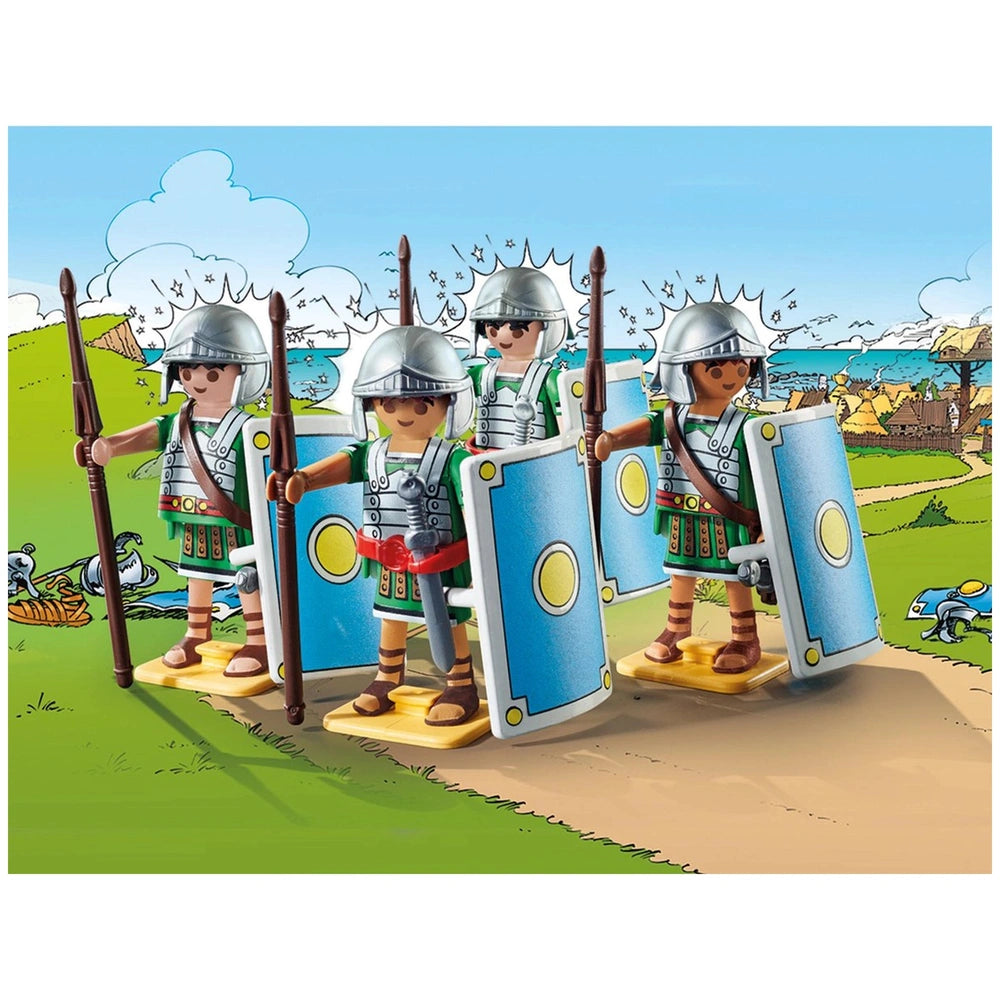 The Playmobil Asterix Roman Troops set features four intricately designed Roman soldiers, each equipped with helmets, swords, and shields. These figures are not just toys; they are a gateway to a world of adventure where strategy and bravery are put to the test. The soldiers can form the iconic "turtle formation," a tactical maneuver that showcases their unity and strength as they advance through the village. This feature not only enhances playability but also encourages children to think critically about teamwork and strategy.