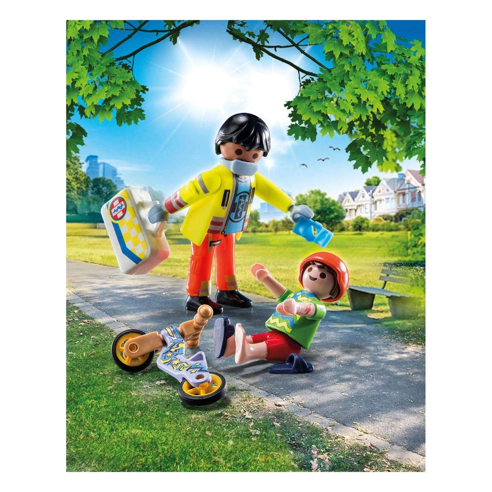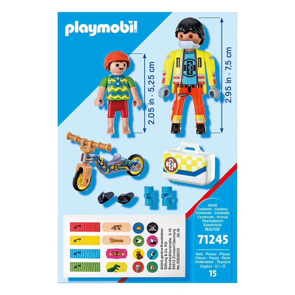 Playmobil City Life Infermiere con Paziente - 71245 Presentiamo il Playmobil City Life Infermiere con Paziente - 71245, un delizioso e coinvolgente set di giocattoli progettato per ispirare il gioco immaginativo mentre insegna ai bambini l'importanza della cura e della compassione. Questo set presenta un paramedico dedicato, sempre pronto a fornire primo soccorso, assicurando che i più piccoli apprendano la salute e la sicurezza in modo divertente e interattivo. Con i suoi colori vivaci e accessori dettagliati, questo set di giocattoli è perfetto per bambini dai quattro anni in su, rendendolo un regalo ideale per i giovani caregiver e avventurieri. Il set Playmobil City Life Infermiere con Paziente include due figure altamente dettagliate: un paramedico premuroso e un ragazzo infortunato, entrambi pronti a intraprendere un viaggio di guarigione e recupero. Il paramedico è dotato di un kit di pronto soccorso completo, con stecche e una varietà di bende, che consente ai bambini di interpretare vari scenari in cui possono esercitare le loro abilità di cura. Questa esperienza pratica non solo migliora la creatività, ma favorisce anche l'empatia mentre i bambini imparano a prendersi cura degli altri. Una delle caratteristiche distintive di questo set è l'uso innovativo della vernice sensibile al calore sul braccio e sulla gamba del bambino, che simula infortuni che possono essere trattati con le etichette di cerotto incluse. Quando vengono sfregati, gli "infortuni" scompaiono, per poi riapparire una volta raffreddati, offrendo un'esperienza coinvolgente ed educativa che insegna ai bambini il processo di guarigione. Questo elemento interattivo aggiunge un livello di realismo al gioco, incoraggiando i bambini a pensare criticamente su come affrontare gli infortuni e prendersi cura dei loro amici. Inoltre, il set include uno scooter, un casco e delle ciabatte, tutti elementi che contribuiscono all'esperienza di gioco immaginativa. I bambini possono creare le proprie storie e scenari, che si tratti di un rapido viaggio verso l'ospedale o di una giornata divertente al parco. La mascherina rimovibile, il casco e le ciabatte consentono ulteriori personalizzazioni e giochi di ruolo, garantendo che ogni sessione di gioco sia unica ed emozionante. La serie Playmobil City Life è rinomata per i suoi veicoli moderni e personaggi realistici, rendendola una preferita tra bambini e genitori. Questo particolare set non solo intrattiene, ma funge anche da prezioso strumento educativo, aiutando i bambini a sviluppare importanti abilità sociali e una comprensione della salute e della sicurezza. Partecipando a giochi di ruolo, i bambini possono esplorare la loro creatività mentre apprendono le responsabilità che derivano dal prendersi cura degli altri. Non perdere l'opportunità di arricchire il tempo di gioco di tuo figlio con il Playmobil City Life Infermiere con Paziente - 71245. Questo set di giocattoli è più di un semplice gioco; è una porta d'accesso all'apprendimento e all'esplorazione. Ordina ora e guarda tuo figlio immergersi in un mondo di avventura, compassione e creatività!