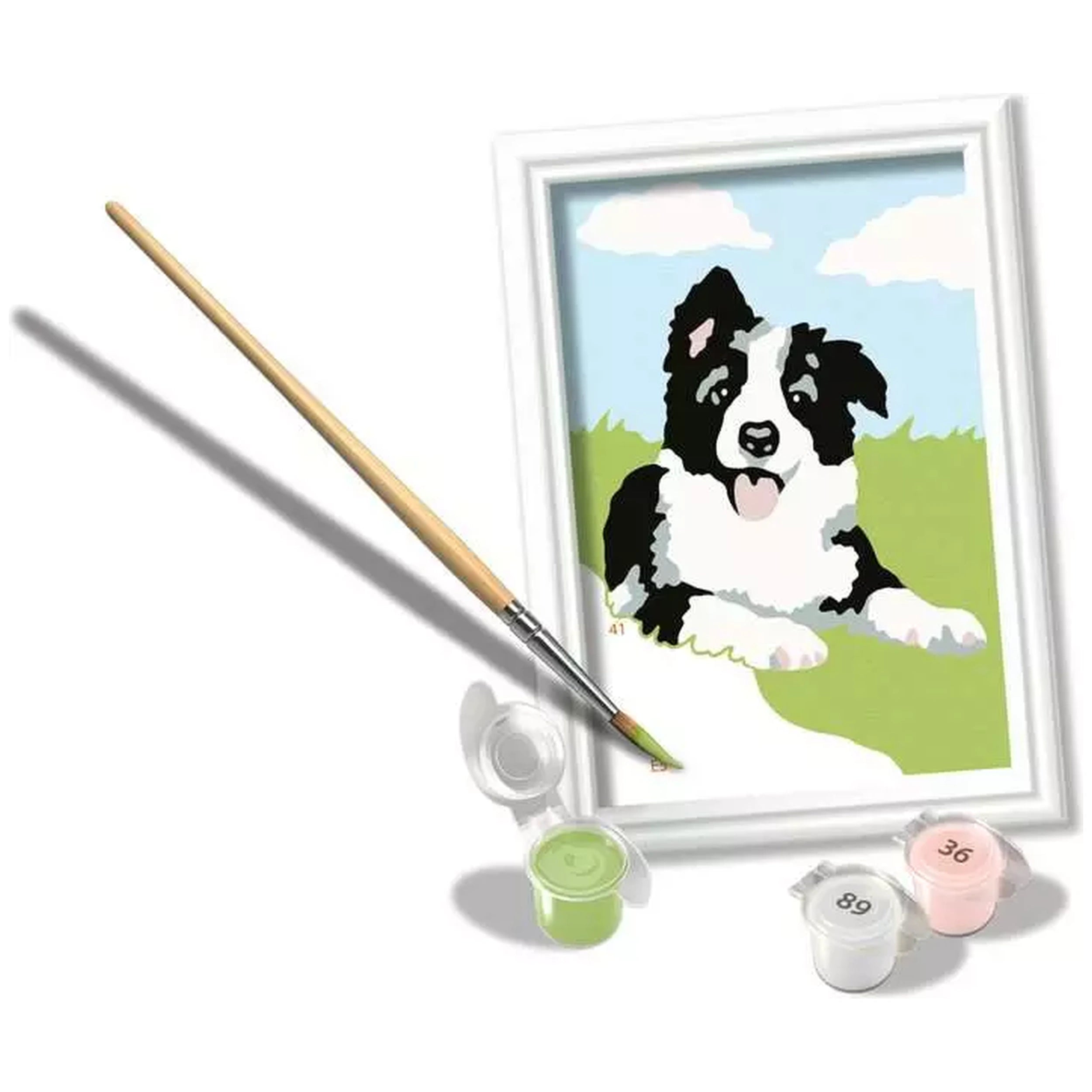 Included in the Ravensburger - Border Collie Puppy set are six pre-mixed acrylic paints, eliminating the need for color mixing and making it easy for children to dive right into their artwork. The vibrant colors are designed to bring the adorable puppy to life, making the finished product a stunning decoration for any child's room. The packaging may vary, but the quality and creativity remain consistent across all sets.
