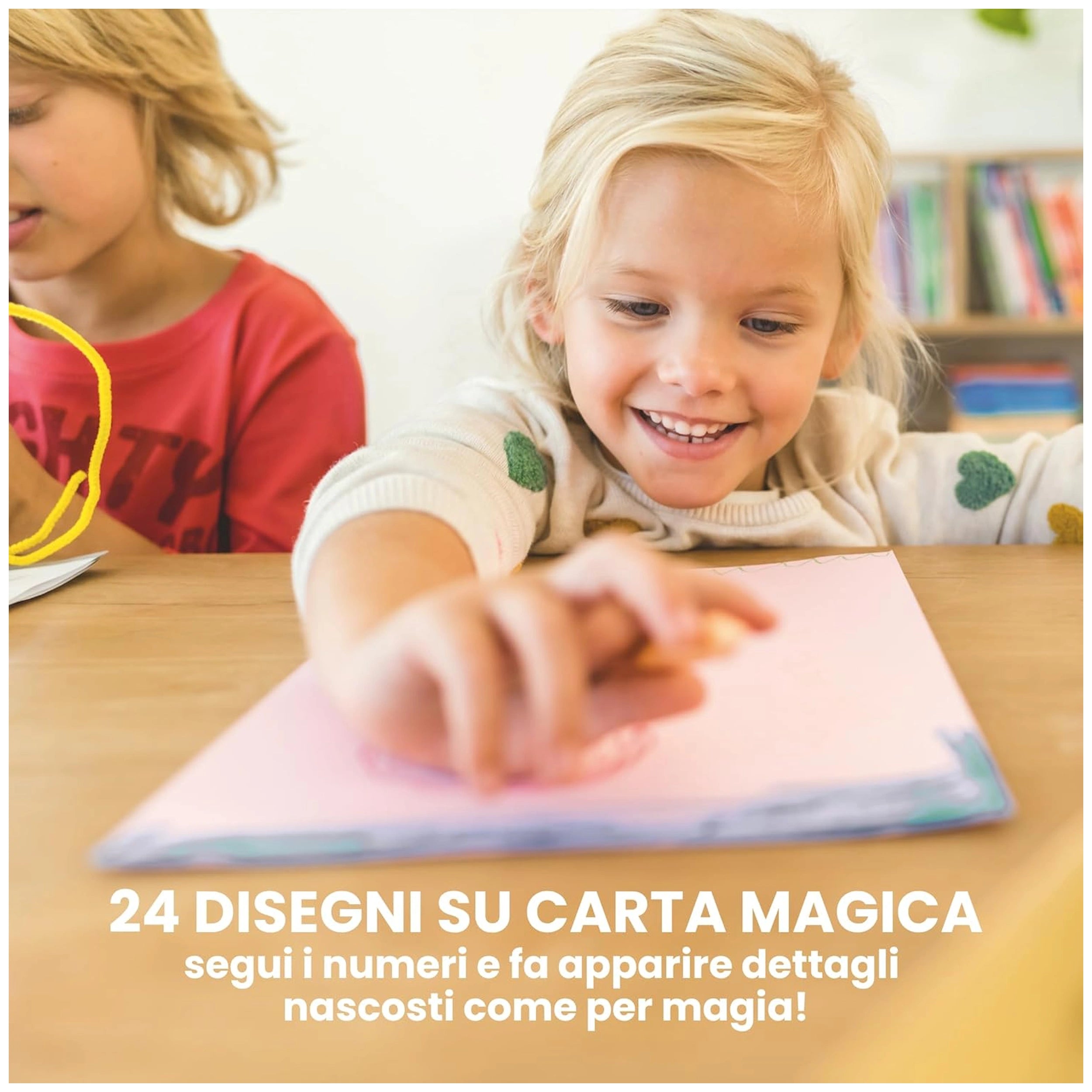 Ravensburger - CreArt-Libro-Di-Disegno-Creativo-Cavalli-Dolci-Arti-E-Artigianato Presentiamo il Ravensburger CreArt Libro di Disegno Creativo Cavalli Dolci, un'aggiunta deliziosa al mondo delle arti e dei mestieri per bambini. Questo innovativo libro da colorare è progettato specificamente per i giovani artisti, offrendo un'esperienza coinvolgente ed educativa che stimola la creatività e l'immaginazione. Con le sue affascinanti illustrazioni di dolci cavalli, questo libro invita i bambini a esplorare il loro potenziale artistico mentre sviluppano abilità essenziali. La serie CreArt si distingue per il suo approccio unico al colorare per numeri, rendendolo accessibile e divertente per bambini di diverse età. Ogni pagina presenta aree chiaramente contrassegnate con numeri che corrispondono a colori specifici, consentendo ai bambini di seguire facilmente e creare immagini vivaci e dettagliate. Questo metodo non solo semplifica il processo di colorazione, ma migliora anche la capacità dei bambini di riconoscere i colori e di migliorare la loro concentrazione. Mentre i bambini si immergono nel mondo del colorare, affineranno anche le loro abilità motorie fini. L'atto di colorare all'interno delle linee richiede precisione e concentrazione, che sono cruciali per il loro sviluppo complessivo. L'edizione Cavalli Dolci è particolarmente attraente, poiché combina la gioia dell'arte con il tema incantevole dei cavalli, catturando i cuori dei giovani amanti degli animali. Il Libro di Disegno Creativo CreArt è adatto per bambini a partire dai cinque anni, con variazioni che si adattano a diversi livelli di abilità. Per i bambini in età prescolare, i numeri sono codificati a colori per facilitare l'abbinamento, garantendo un'esperienza divertente e senza frustrazioni. Man mano che i bambini progrediscono, possono affrontare design più intricati che sfidano le loro capacità e incoraggiano la crescita. Inoltre, alcune edizioni della serie CreArt presentano carta magica che rivela dettagli nascosti mentre i bambini colorano, aggiungendo un elemento di sorpresa e eccitazione all'attività. Questa caratteristica innovativa non solo arricchisce l'esperienza di colorazione, ma motiva anche i bambini a impegnarsi più profondamente con la loro opera d'arte. In conclusione, il Ravensburger CreArt Libro di Disegno Creativo Cavalli Dolci è il regalo perfetto per nutrire la creatività e l'espressione artistica nelle giovani menti. Incoraggia l'immaginazione di tuo figlio e osserva come trasformano semplici contorni in straordinarie opere d'arte. Non perdere l'opportunità di ispirare la prossima generazione di artisti: ordina la tua copia oggi e lascia che l'avventura del colorare abbia inizio!