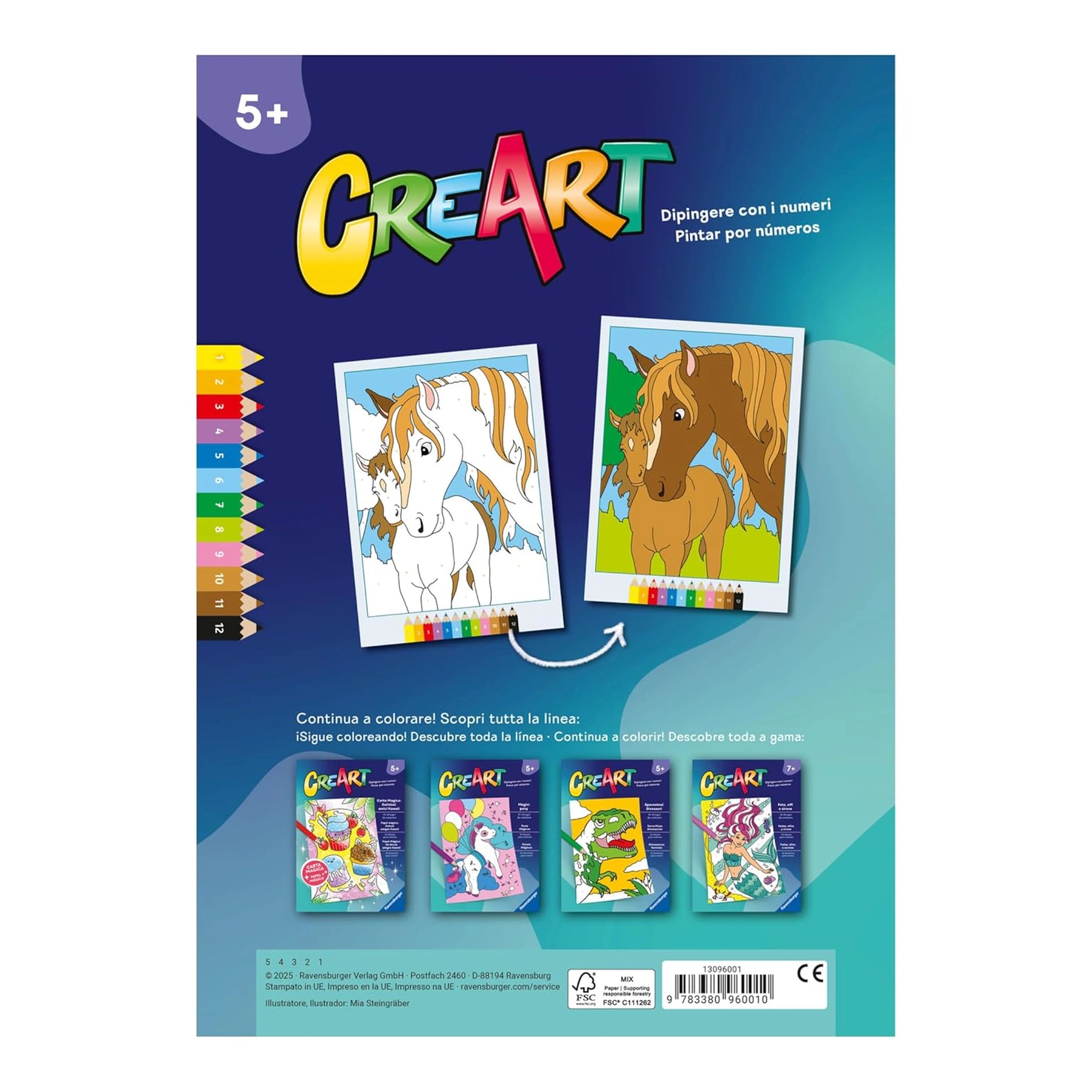 Ravensburger - CreArt - Libro da colorare creativo - Cavalli dolci - Arti e mestieri