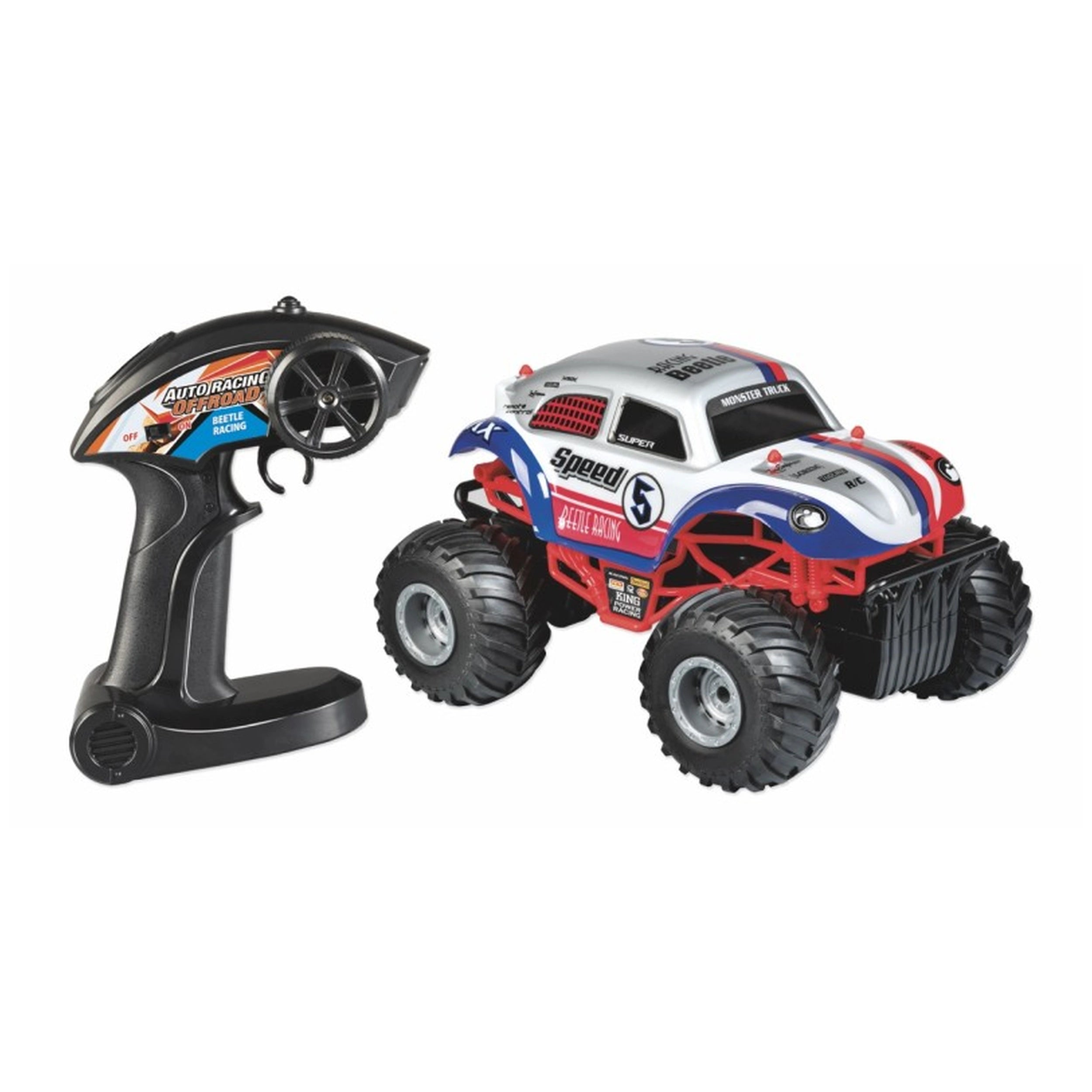 Introducing the RONCHI SUPER TOYS RS Toys - Auto Racing Monster Truck Offroad RC Beetle Racing, a thrilling remote-controlled vehicle that combines classic design with modern performance. This 1:18 scale monster truck is inspired by the iconic Beetle racing car, delivering an exhilarating offroad experience for adventurous drivers aged 5 and up. With its unique blend of style and power, this RC vehicle is set to dominate any terrain, making it a must-have for young racing enthusiasts.