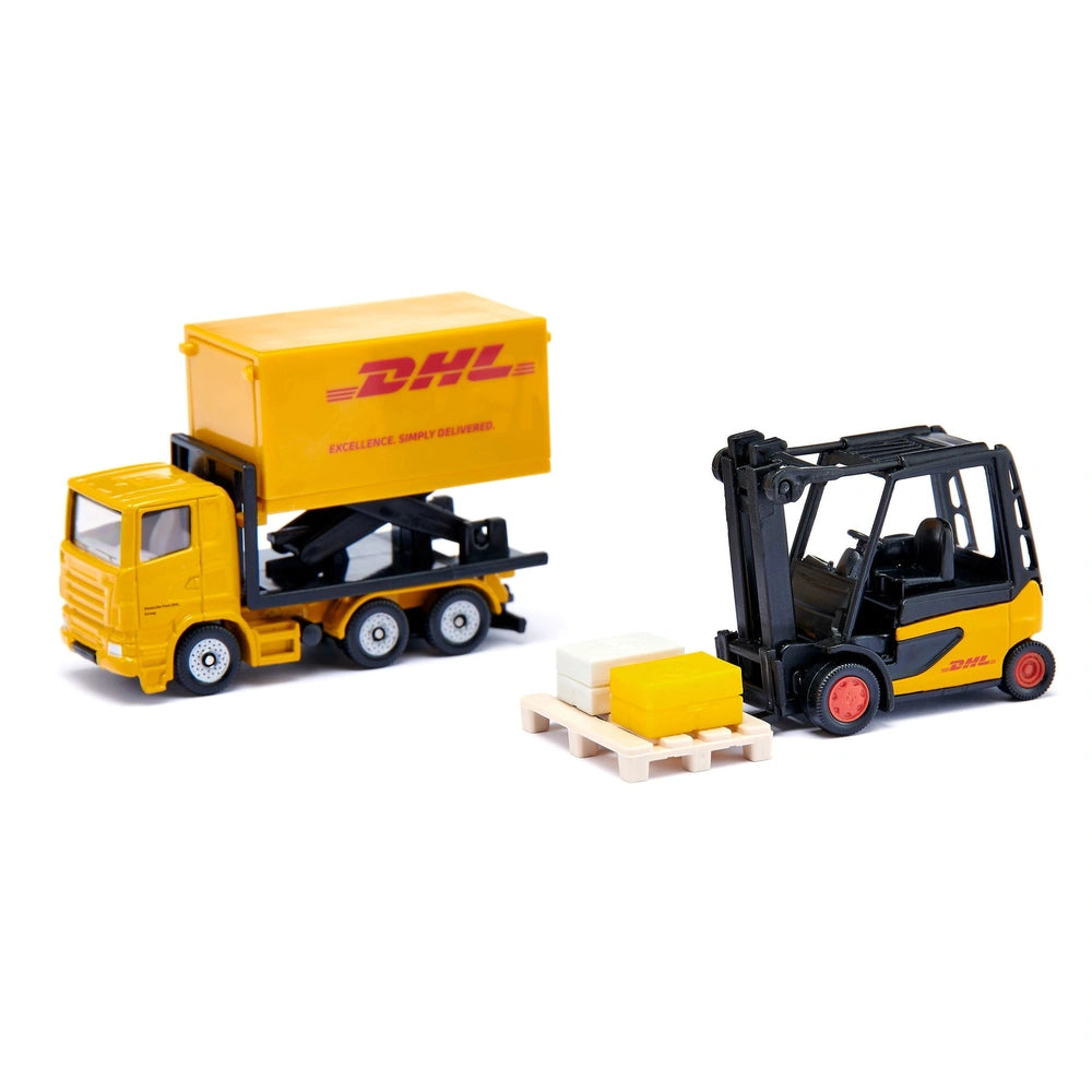 The Siku DHL Gift Set includes a meticulously crafted truck with a trailer, a forklift, and a transporter, all designed to replicate the real-life vehicles used by DHL. Each piece is painted in the signature DHL yellow, adorned with the recognizable red lettering that signifies reliability and efficiency. This attention to detail ensures that children can engage in role-playing scenarios that mimic real-world logistics operations, fostering creativity and problem-solving skills.