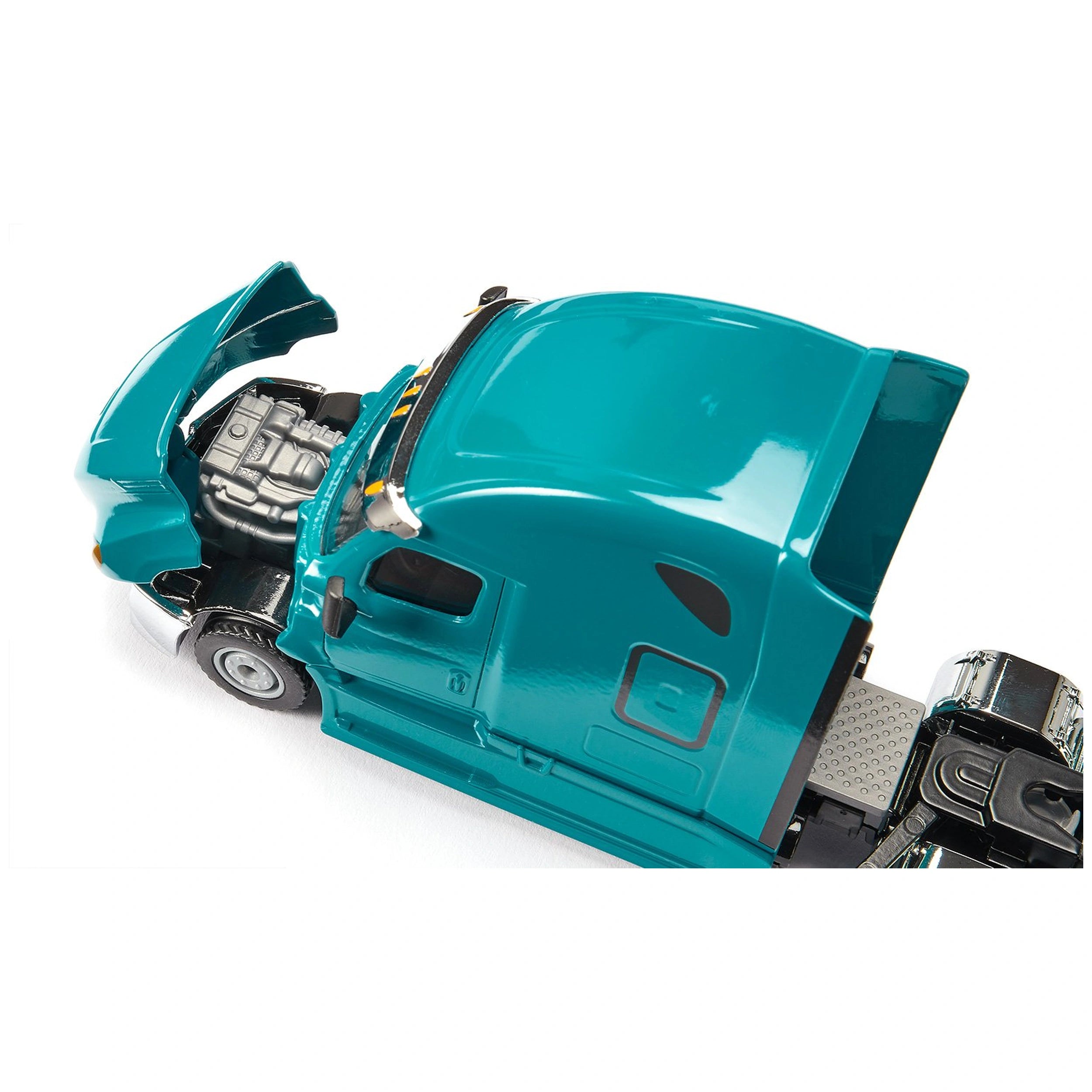 Visually, the Siku Freightliner Cascadia is striking, adorned in a vibrant “Miami Blue” paint job complemented by chrome accents that enhance its aesthetic appeal. The model captures the essence of the real truck, making it an eye-catching addition to any collection. The ability to open the bonnet adds an interactive element, allowing users to explore the intricacies of this impressive vehicle further.