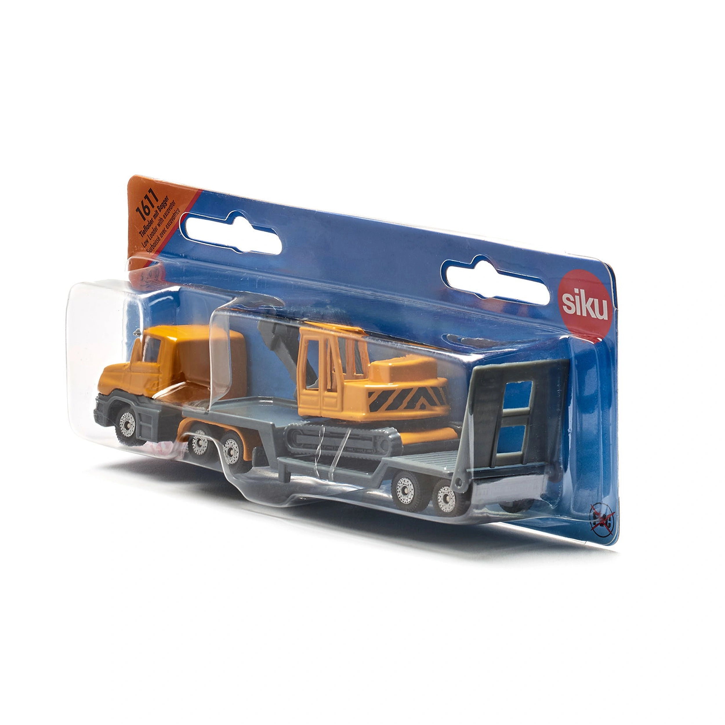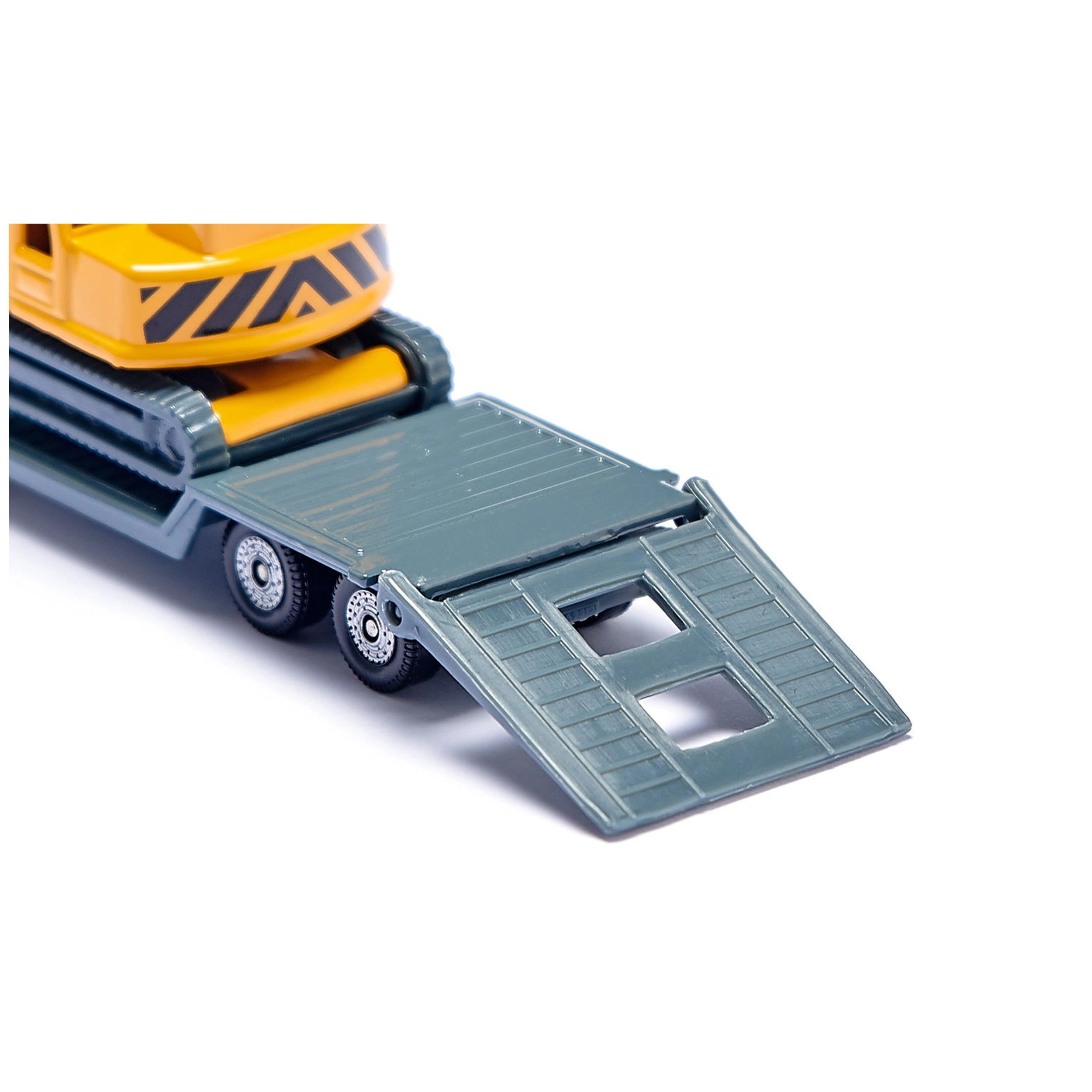 Introducing the Siku Low Loader with Excavator, a meticulously crafted play vehicle set designed for enthusiasts of construction machinery. This exceptional model combines both functionality and realism, making it a perfect addition to any collection. The low loader trailer is engineered to transport the included SIKU excavator with ease, showcasing the brand's commitment to quality and detail.