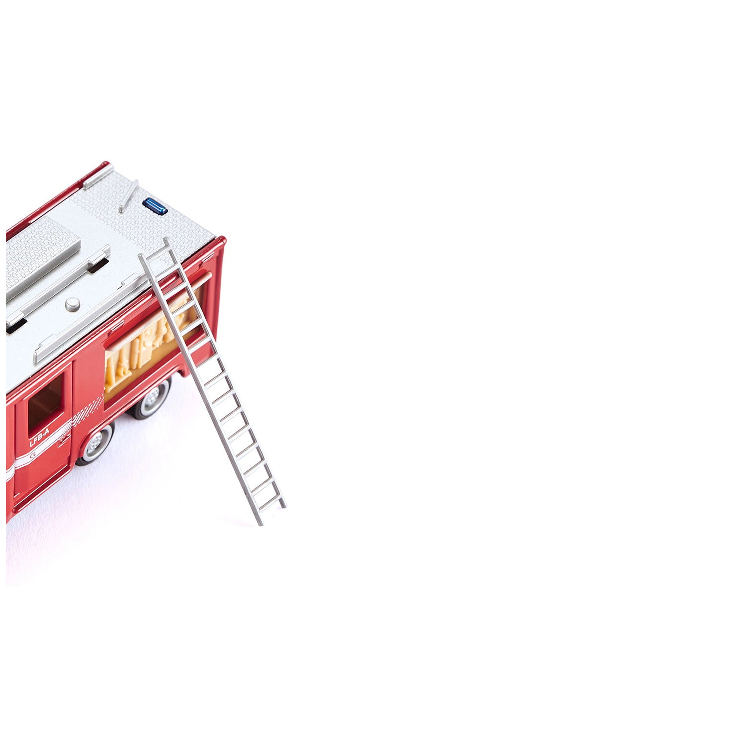 In addition to its accessibility, the Siku fire engine includes newly modeled flaps on the side and rear, which are neatly recessed into the body when opened. This feature not only adds to the authenticity of the model but also reveals intricately reproduced structures that reflect real-life fire engines. Children can explore these details, enhancing their understanding of emergency vehicles and their functions.