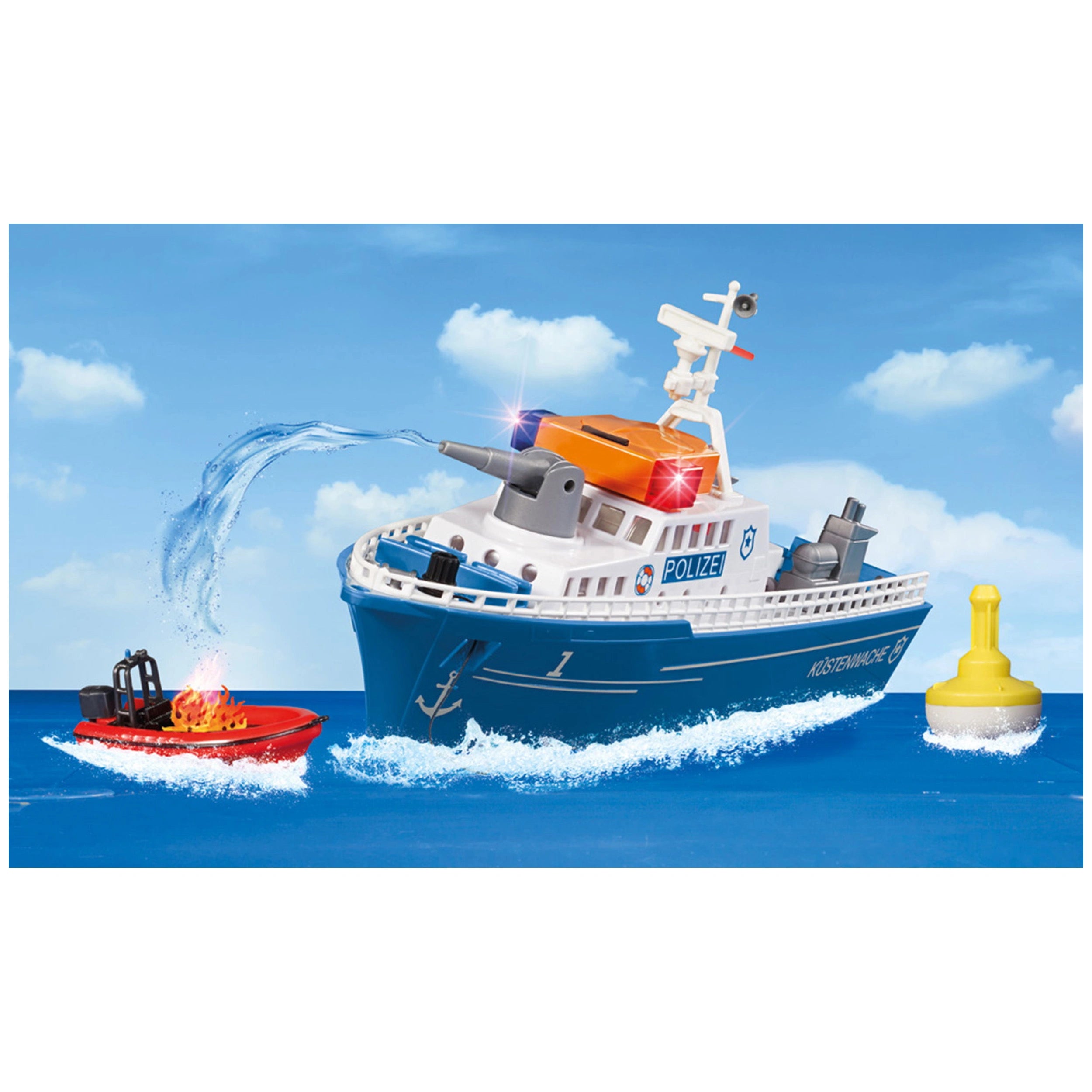 The Siku Police Boat is designed for compatibility with popular motors from other system toys, thanks to an adapter that allows for easy integration. This feature encourages children to expand their play possibilities, creating a dynamic play environment where they can combine different vehicles and accessories. Additionally, a large buoy is included, providing a realistic anchoring option when the boat is not in pursuit, adding another layer of engagement to the playtime experience.