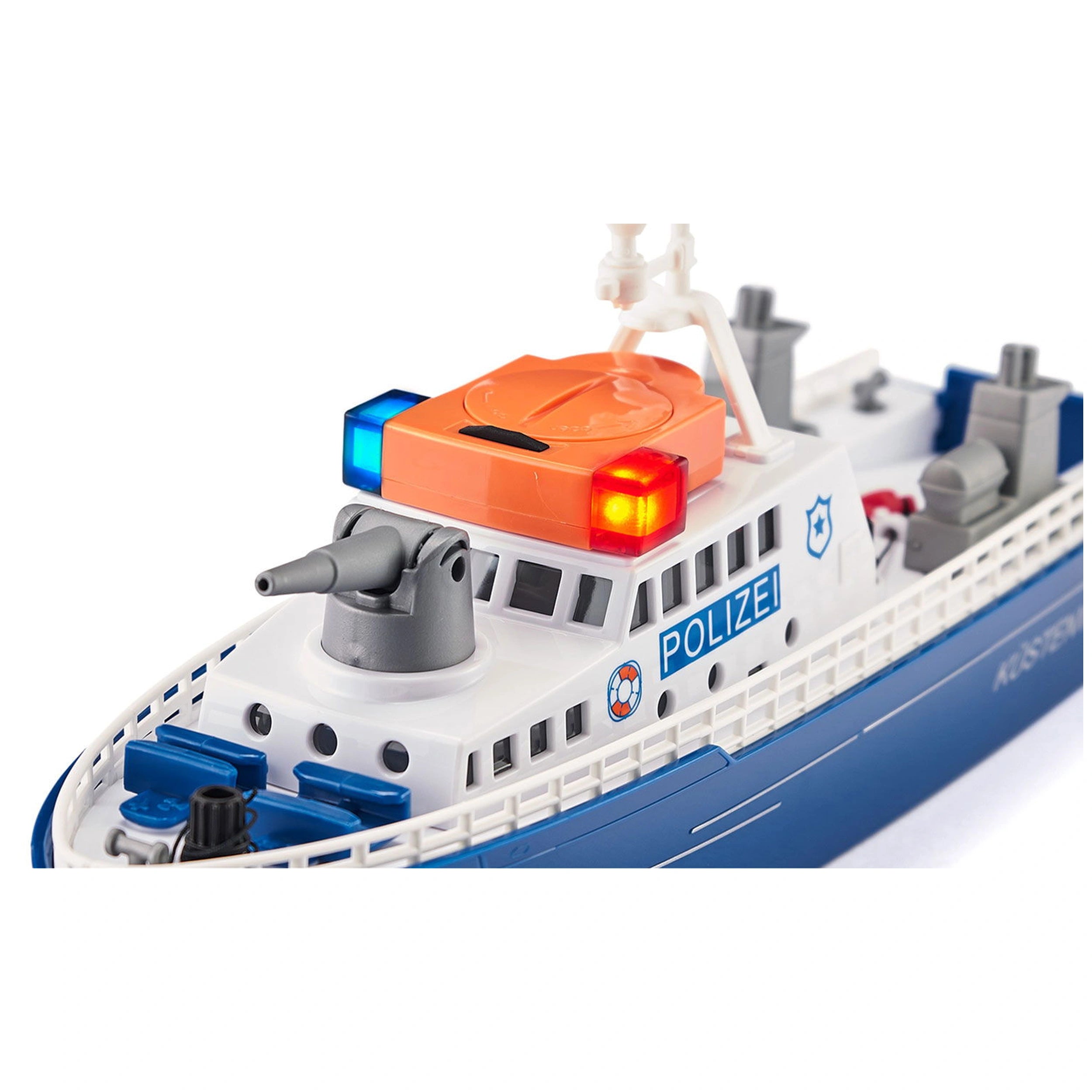 The Siku Police Boat is equipped with vibrant blue and red flashing LED lights, along with an electric siren that adds an authentic touch to the play experience. As children navigate the waters, they can recreate intense chase scenes where police officers pursue smugglers attempting to escape. The boat's design allows for seamless movement through water, making it an ideal choice for both indoor and outdoor play. The foam splashes against the bow enhance the realism, immersing young adventurers in their imaginative scenarios.