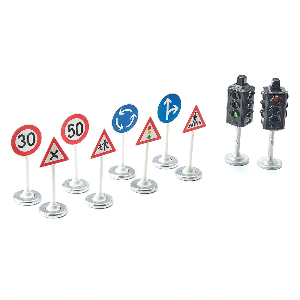 Introducing the Siku Traffic Lights and Road Signs Toy Playsets, an essential accessory set designed to enhance your SIKUWorld experience. This meticulously crafted set includes two vibrant traffic lights and eight detailed traffic signs, allowing young builders and imaginative minds to expand their miniature cityscapes. With these realistic elements, children can create dynamic roadways and bustling intersections, fostering creativity and encouraging imaginative play.