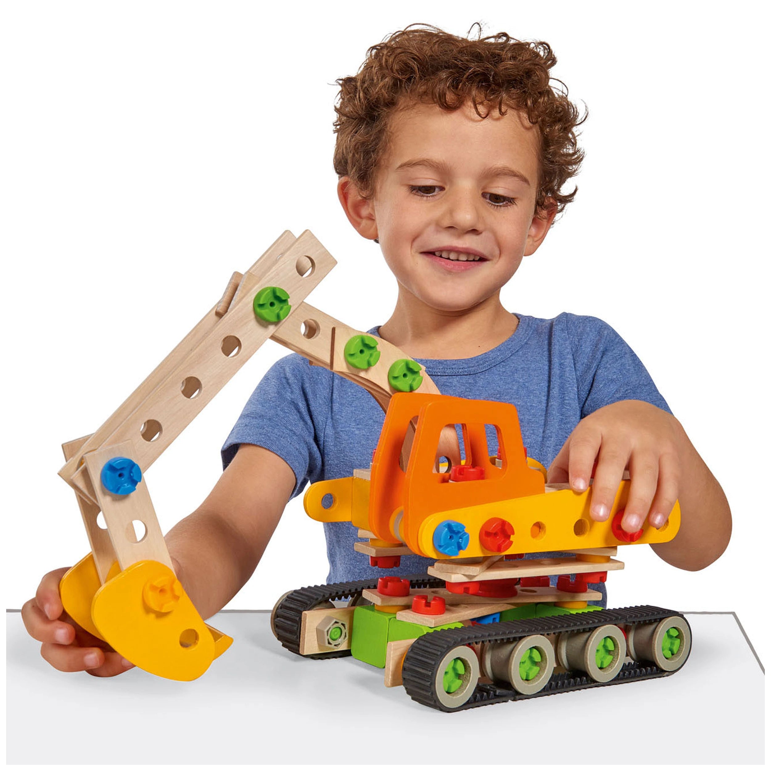 Eichhorn - Veicoli da Lavoro Constructor 4 in 1 - 170 Pezzi - Giocattoli da Costruzione Presentiamo il set di costruzione Eichhorn Veicoli da Lavoro Constructor 4 in 1, un giocattolo versatile e coinvolgente progettato per ispirare la creatività e il gioco immaginativo nei bambini dai sei anni in su. Questo completo set di costruzione comprende 170 pezzi meticolosamente realizzati, che consentono ai giovani costruttori di assemblare quattro modelli distinti: un escavatore cingolato, un caricatore cingolato, un rimorchio misto e uno snowquad. Ogni modello è progettato per fornire un'esperienza autentica di costruzione, incoraggiando i bambini a esplorare il mondo dell'ingegneria e della meccanica. Il set di veicoli da lavoro Eichhorn è realizzato in legno di faggio certificato FSC® di alta qualità e plastica durevole, garantendo che ogni pezzo sia non solo sicuro per i bambini, ma anche ecologico. L'uso di materiali premium garantisce longevità, permettendo ore di gioco senza compromettere la qualità. Questo set di costruzione è perfetto per i bambini che amano le attività pratiche e sono desiderosi di apprendere i meccanismi dei veicoli da costruzione. Con 170 pezzi inclusi, le possibilità di creatività sono infinite. I bambini possono seguire le istruzioni incluse per costruire ogni veicolo o usare la loro immaginazione per creare design unici. Questa flessibilità non solo migliora le capacità di problem-solving, ma favorisce anche il pensiero critico mentre i bambini imparano a affrontare le sfide della costruzione. Il set è progettato per essere sia educativo che divertente, rendendolo un regalo ideale per compleanni, festività o qualsiasi occasione speciale. La sicurezza è una priorità assoluta con il set di veicoli da lavoro Eichhorn. È importante notare che questo prodotto non è adatto a bambini di età inferiore ai tre anni a causa di piccoli pezzi che possono rappresentare un rischio di soffocamento. I genitori possono stare tranquilli sapendo che i loro figli stanno giocando con un giocattolo che soddisfa rigorosi standard di sicurezza, promuovendo al contempo abilità di sviluppo. Realizzato in Germania, questo set di costruzione riflette gli elevati standard di artigianato e design per cui Eichhorn è conosciuta. L'attenzione ai dettagli in ogni pezzo assicura che i bambini possano godere di un'esperienza di costruzione realistica, mentre i colori vivaci e la costruzione robusta rendono questi veicoli visivamente attraenti. La combinazione di legno di faggio e plastica non solo migliora la durata, ma offre anche un'esperienza tattile che i bambini adoreranno. In conclusione, il set di costruzione Eichhorn Veicoli da Lavoro Constructor 4 in 1 è un giocattolo eccezionale che combina divertimento, educazione e sicurezza. È un ottimo modo per coinvolgere i bambini nel gioco costruttivo mentre li aiuta a sviluppare abilità essenziali. Non perdere l'opportunità di ispirare la prossima generazione di costruttori e ingegneri. Ordina oggi il tuo set di veicoli da lavoro Eichhorn e guarda l'immaginazione di tuo figlio volare!