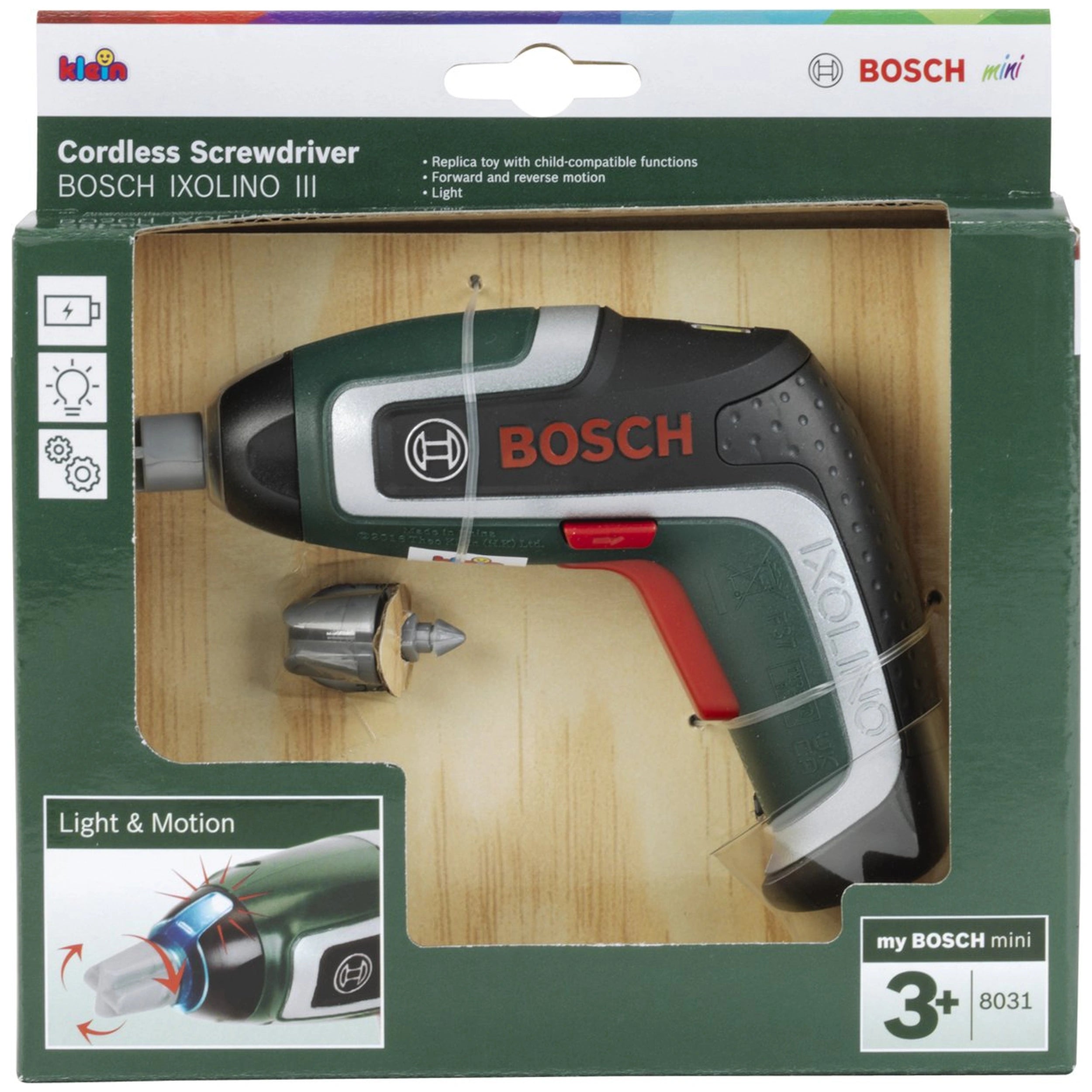 Theo Klein - Boash - Cacciavite Senza Fili - Professioni e Gioco di Ruolo Presentiamo il Theo Klein - Boash - Cacciavite Senza Fili, un'aggiunta deliziosa al gioco di qualsiasi bambino che stimola creatività e immaginazione. Questo affascinante cacciavite giocattolo assomiglia da vicino al suo omologo più grande, il Bosch Ixolino, ed è progettato per catturare i cuori dei giovani hobbisti. Con le sue caratteristiche realistiche, tra cui la capacità di ruotare sia in senso orario che antiorario, questo cacciavite senza fili è perfetto per professioni simulate e scenari di gioco di ruolo. L'inclusione di due attacchi intercambiabili per viti a testa piatta e a croce arricchisce l'esperienza di gioco, consentendo ai bambini di impegnarsi in attività pratiche che imitano compiti reali. Il cacciavite senza fili Theo Klein non è solo un giocattolo; è uno strumento per l'apprendimento e lo sviluppo. Dotato di funzioni adatte ai bambini, questo cacciavite a batteria si illumina e produce suoni realistici quando l'interruttore viene premuto, creando un'esperienza coinvolgente per i giovani costruttori. Il funzionamento udibile del piccolo motore aggiunge autenticità, rendendo il momento del gioco sia divertente che educativo. Progettato con la sicurezza in mente, l'Ixolino 7 garantisce che i bambini possano esplorare la loro creatività senza alcun rischio, rendendolo una scelta ideale per i genitori che danno priorità alla sicurezza nei giocattoli dei loro figli. Una delle caratteristiche distintive dell'Ixolino 7 è la sua compatibilità con tutti i sistemi di cacciaviti Bosch e Technico offerti da Theo Klein. Ciò significa che i bambini possono espandere i loro set di gioco e impegnarsi in progetti di costruzione più complessi, sviluppando le loro abilità motorie e la coordinazione occhio-mano. La versatilità del cacciavite incoraggia il gioco immaginativo, permettendo ai bambini di creare una varietà di scenari e sviluppare abilità di problem-solving mentre navigano nei loro mini progetti di costruzione. L'Ixolino 7 è adatto per bambini dai tre anni in su, rendendolo un regalo perfetto per compleanni, festività o qualsiasi occasione speciale. Le batterie necessarie (2 x R03-AAA) non sono incluse, ma una volta alimentato, il cacciavite diventa uno strumento essenziale nel laboratorio di qualsiasi bambino. Questo giocattolo non solo intrattiene ma educa anche, aiutando i bambini a comprendere le basi degli strumenti e della costruzione mentre si divertono. In Klein Toys, ci impegniamo a fornire giocattoli educativi di alta qualità che ispirano e supportano la crescita e lo sviluppo dei bambini. Dalla nostra fondazione nel 1949, abbiamo costruito un'eredità di eccellenza nella creazione di giocattoli che stimolano l'immaginazione e la creatività. La nostra missione è rendere il momento del gioco un'esperienza gioiosa e arricchente, e il cacciavite senza fili Theo Klein è un perfetto esempio di questa filosofia in azione. Non perdere l'opportunità di arricchire il momento di gioco di tuo figlio con il Theo Klein - Boash - Cacciavite Senza Fili. Incoraggia la loro creatività, supporta il loro sviluppo e osserva mentre intraprendono innumerevoli avventure nel loro mondo immaginario. Ordina ora e regala a tuo figlio il dono dell'esplorazione e del divertimento con questo eccezionale giocattolo!