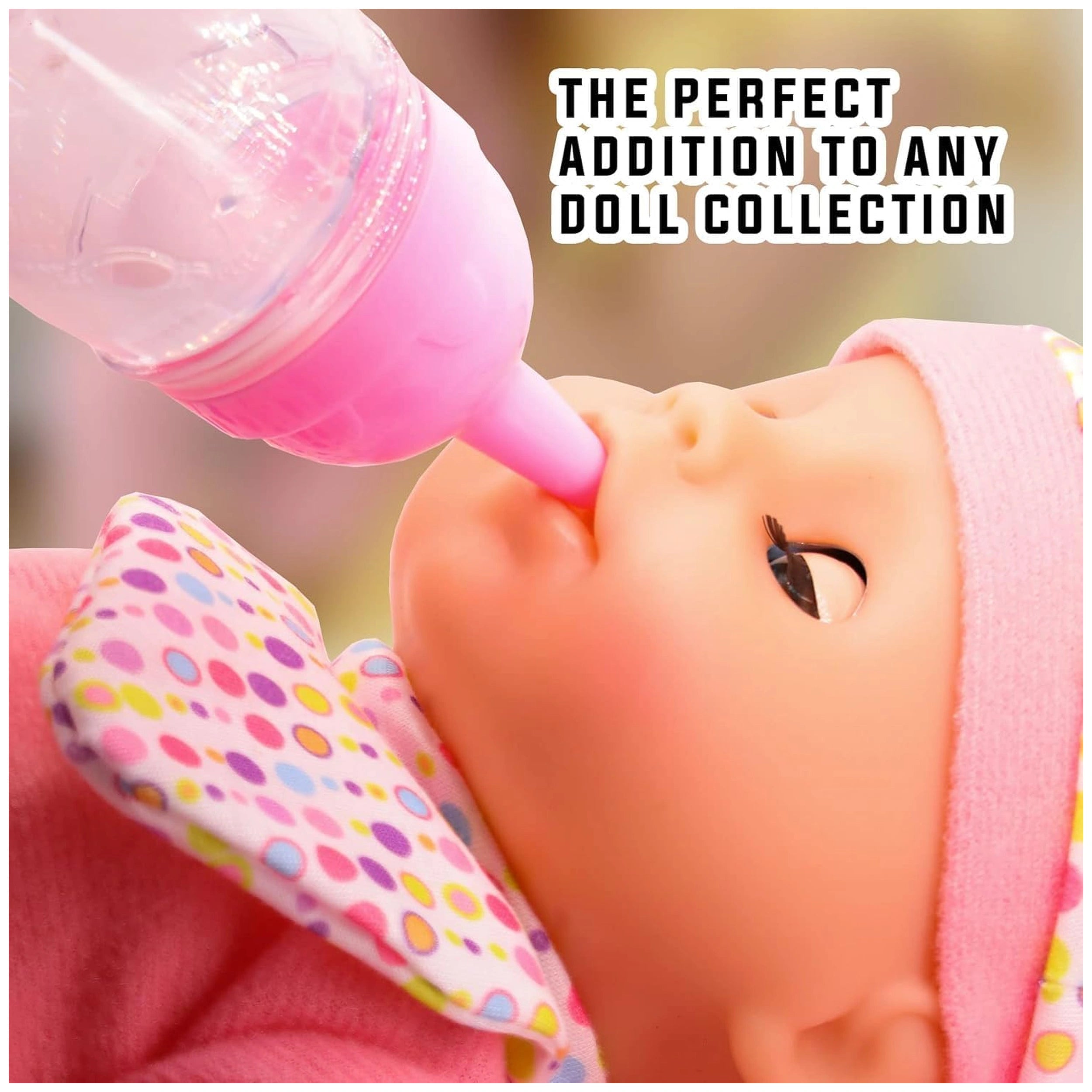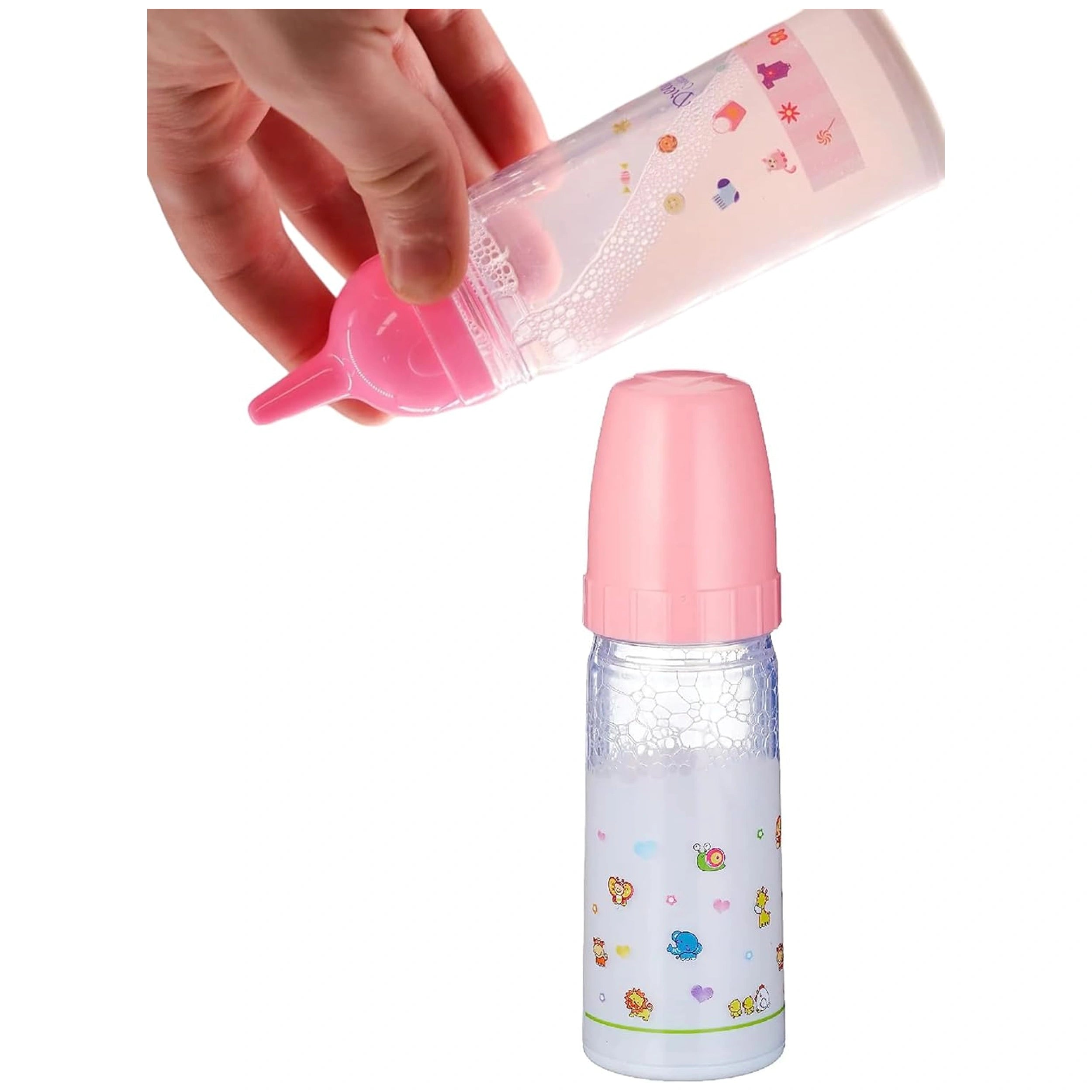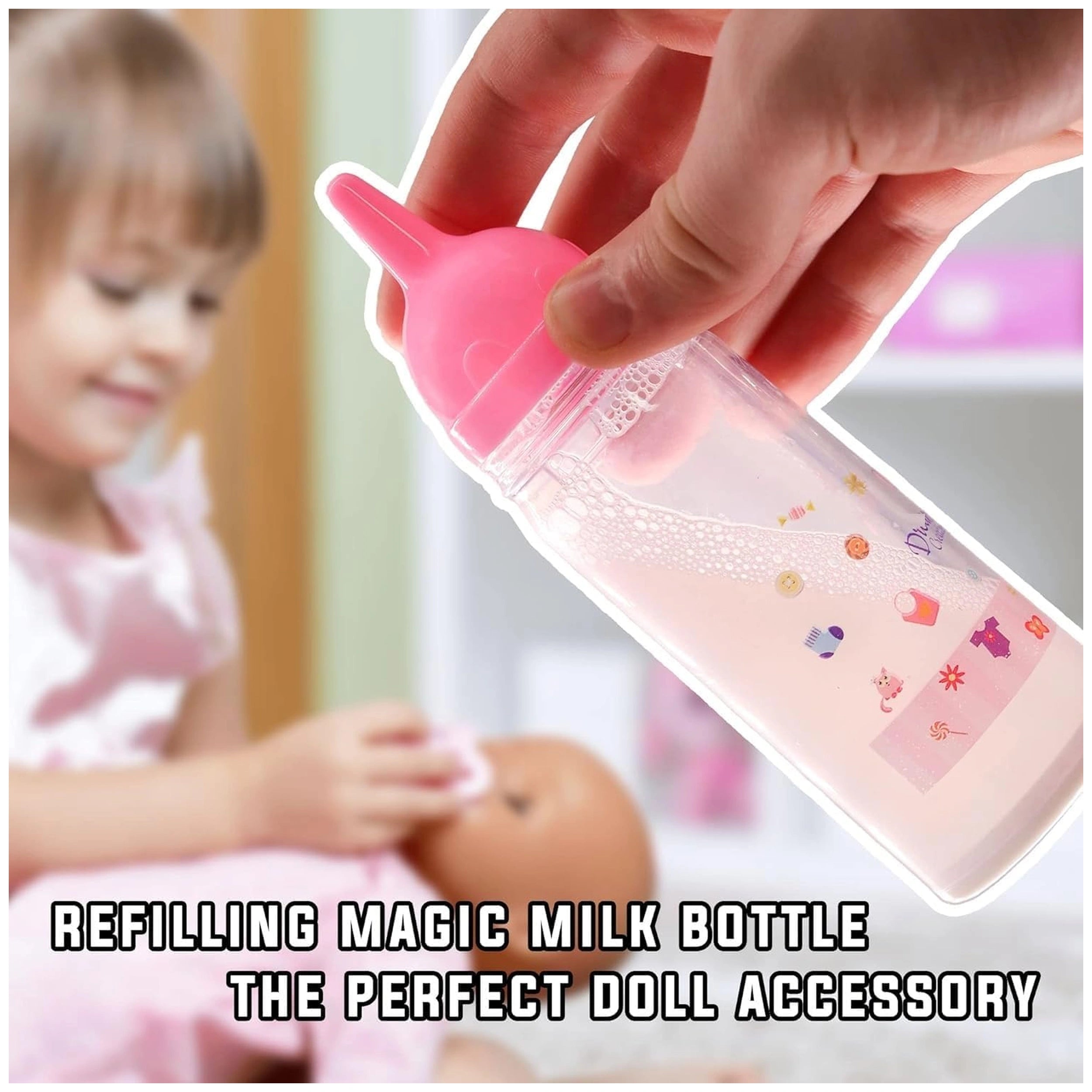 The Magical Bottle is ingeniously designed to create a realistic feeding experience. When tilted, the liquid inside the bottle – whether it’s milk or juice – appears to magically disappear and reappear, providing an engaging visual effect that sparks curiosity and wonder. This captivating feature allows children to simulate feeding their dolls, making the play experience more immersive and enjoyable. The element of surprise keeps kids entertained while they learn about nurturing and responsibility.