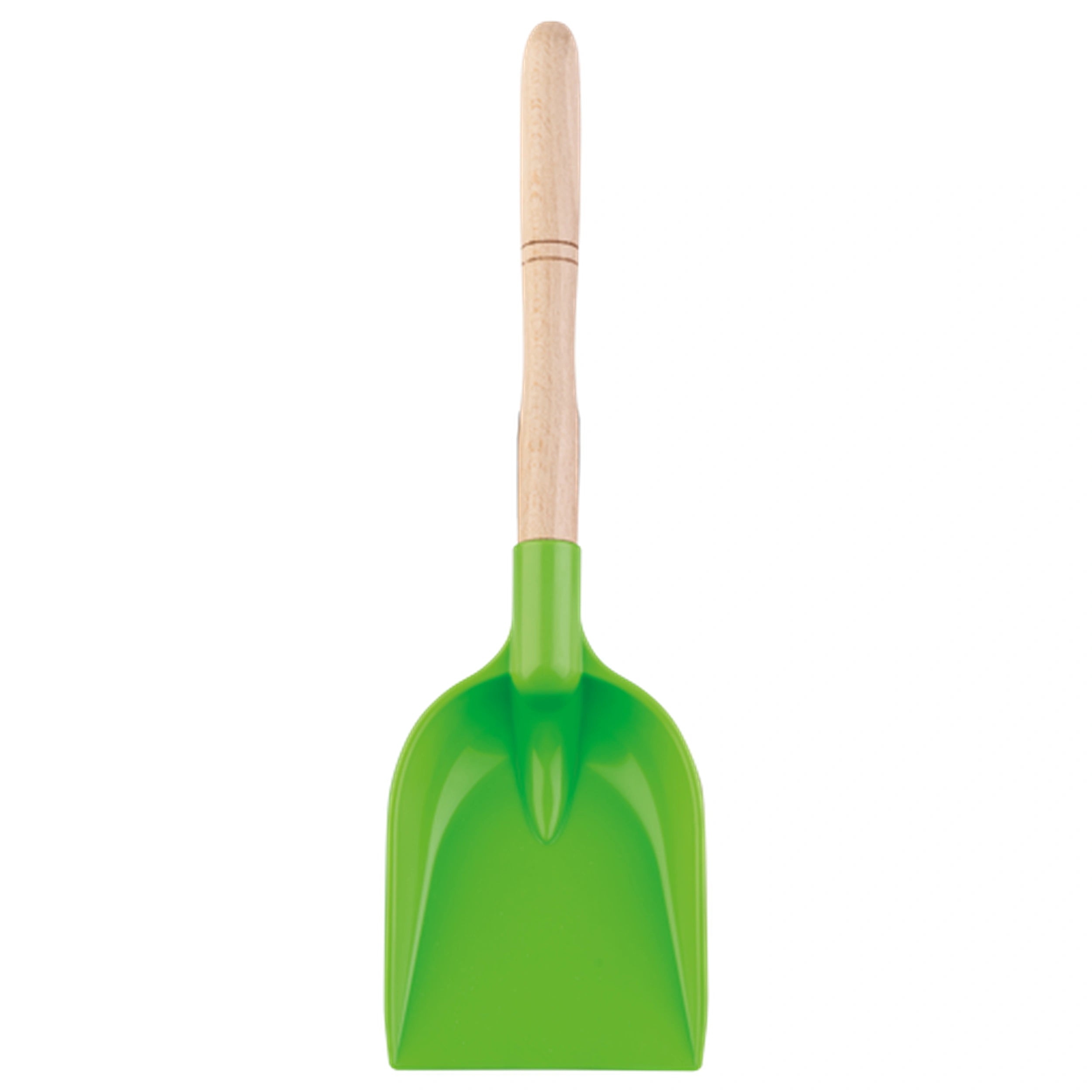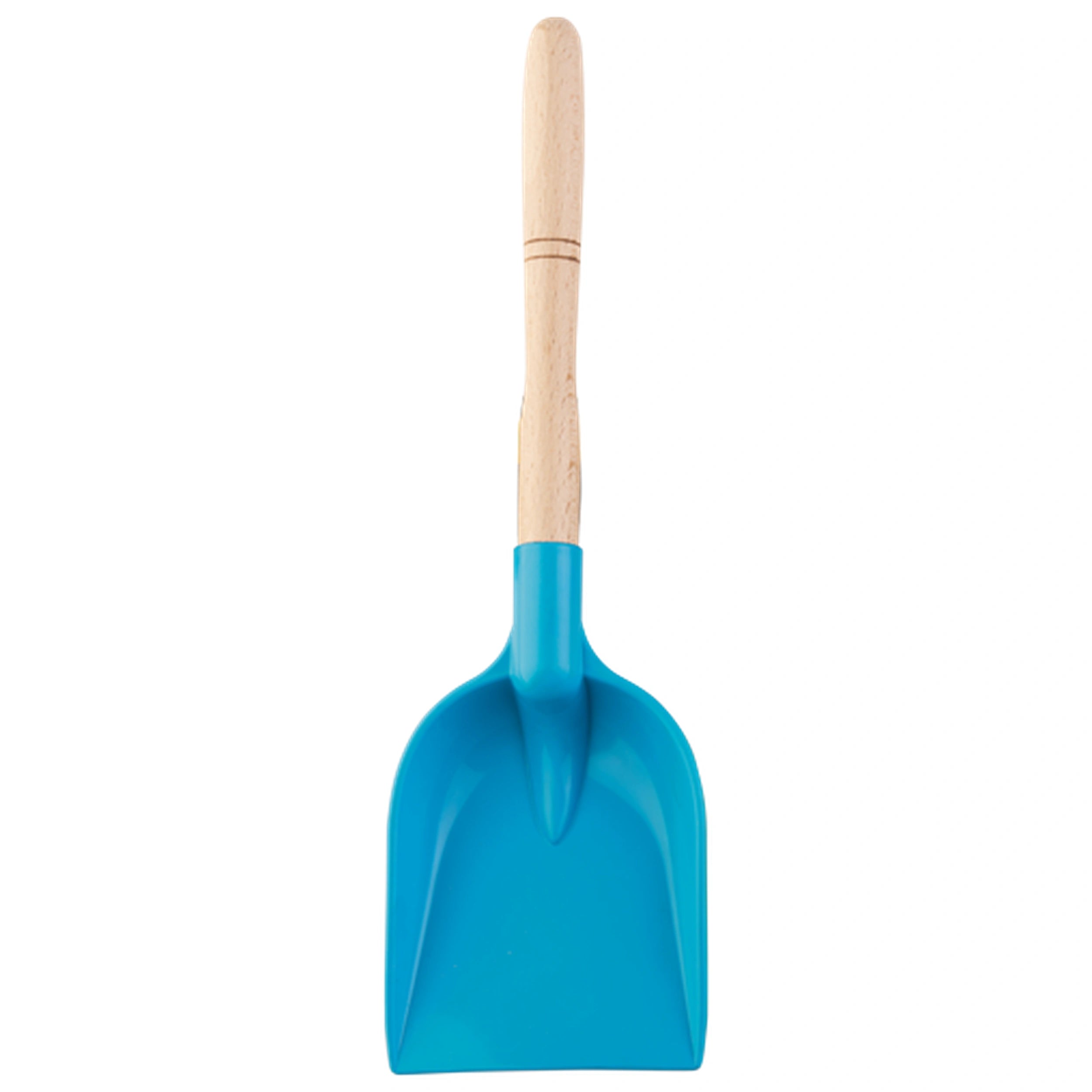 The shovel's design features a comfortable wooden handle that provides a secure grip for little hands, making it easy for children to dig, scoop, and transport sand. Its lightweight construction ensures that even the youngest users can handle it with ease, promoting independence and encouraging outdoor play. Whether at the beach, in the sandbox, or during a backyard adventure, this shovel is the perfect tool for imaginative play.