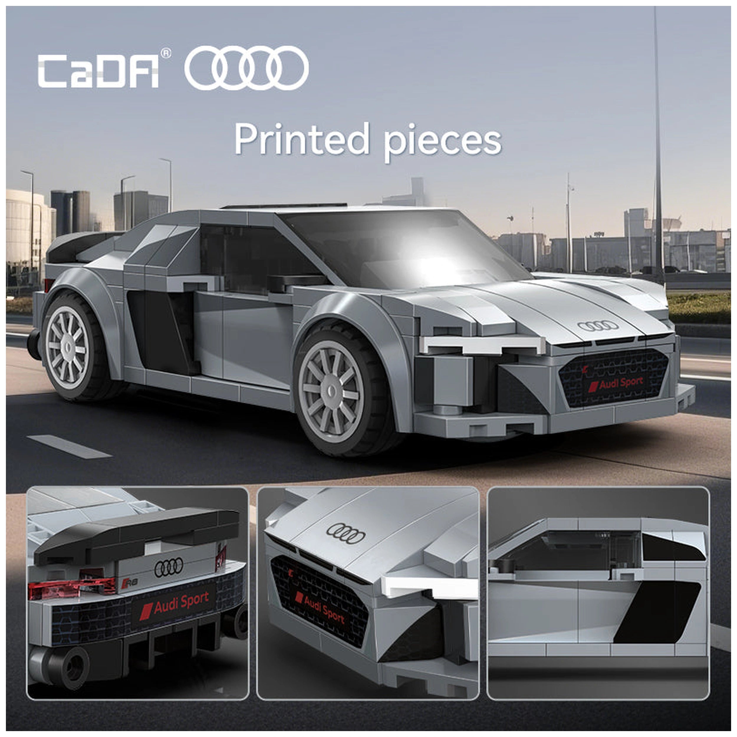 The CaDA Audi R8 Coupe construction set features a fully printed body, ensuring that every detail is represented without the use of cheap stickers. This attention to detail not only enhances the aesthetic appeal of the model but also adds to its overall durability, making it a perfect addition to any collection. The realistic design is complemented by moveable parts, allowing users to adjust the spoiler, spin the wheels, and open the doors, providing endless opportunities for imaginative play or display.