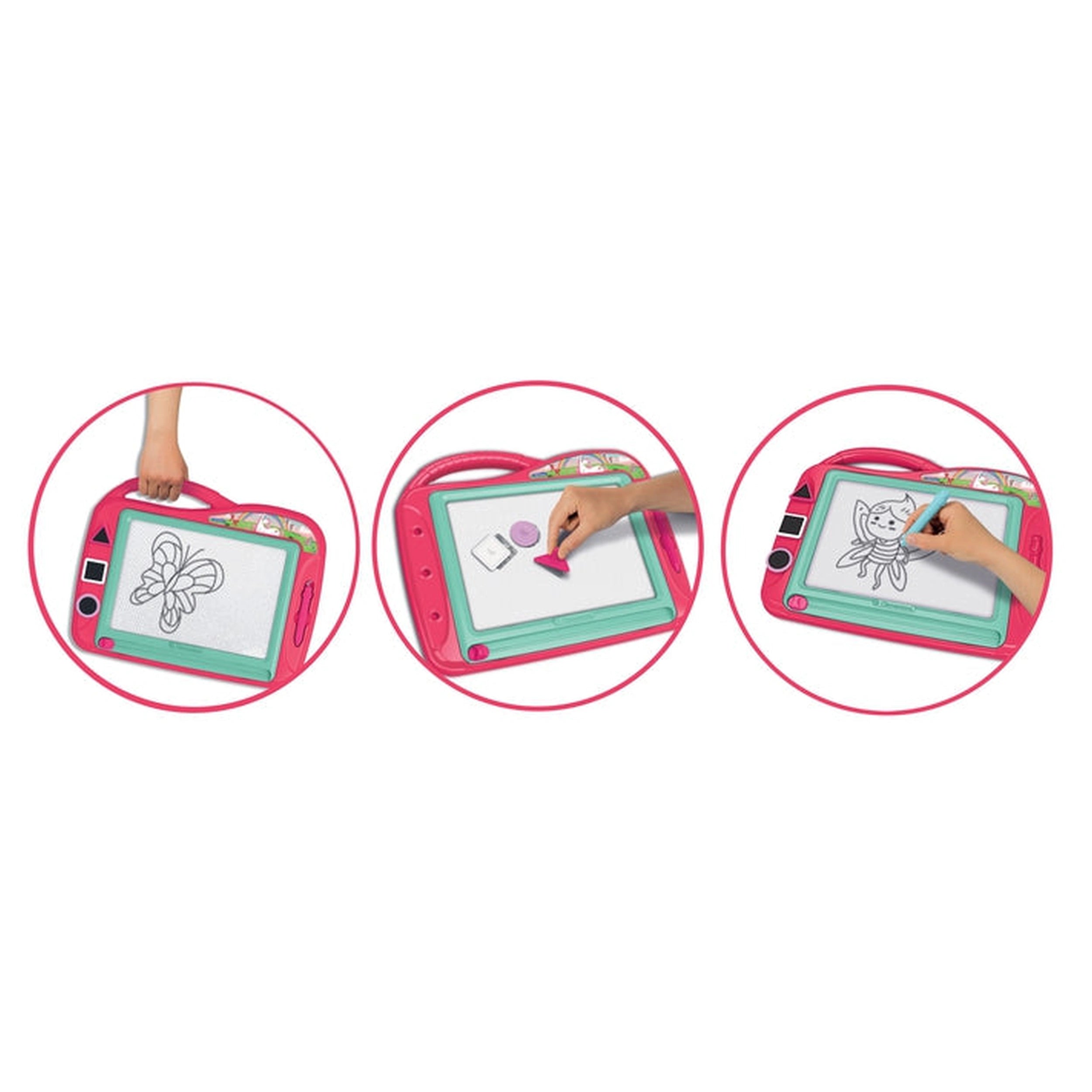 The Clementoni Magnetic Drawing Board is thoughtfully designed to stimulate children's creativity and fine motor skills. It comes with three unique stamps that allow kids to embellish their drawings with whimsical unicorn designs, enhancing their artistic creations. This interactive experience encourages children to explore their imagination, experiment with colors, and develop their artistic talents in a playful environment. The board's magnetic surface ensures that every stroke is smooth and vibrant, making it an ideal choice for budding artists.