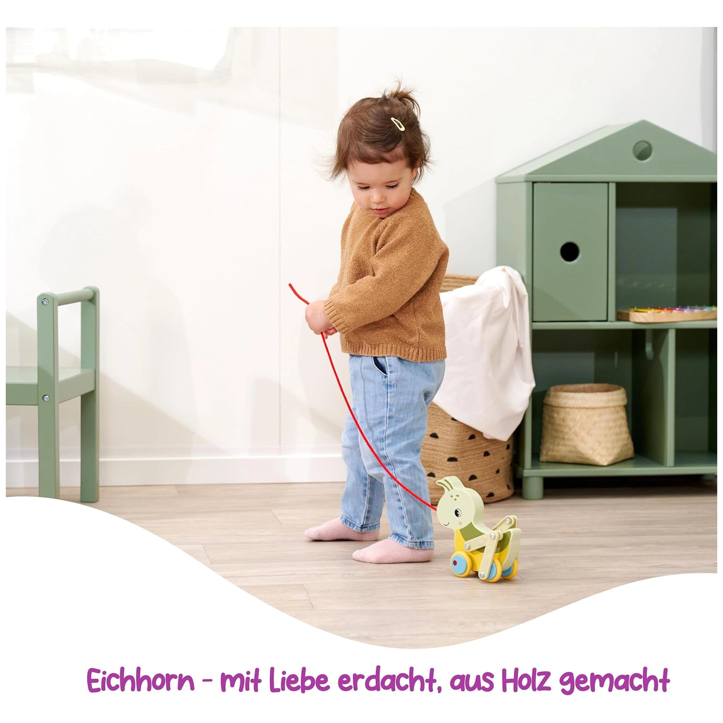 The Eichhorn Grasshopper is not just a toy; it's a tool for learning. With a smooth pull cord and sturdy wheels, this push and pull toy supports your child's first steps, providing stability and encouragement as they navigate their world. Whether indoors or outdoors, the grasshopper is a reliable companion that helps build confidence in walking while enhancing coordination and balance. Your child will love the thrill of pulling their new friend along on countless adventures.