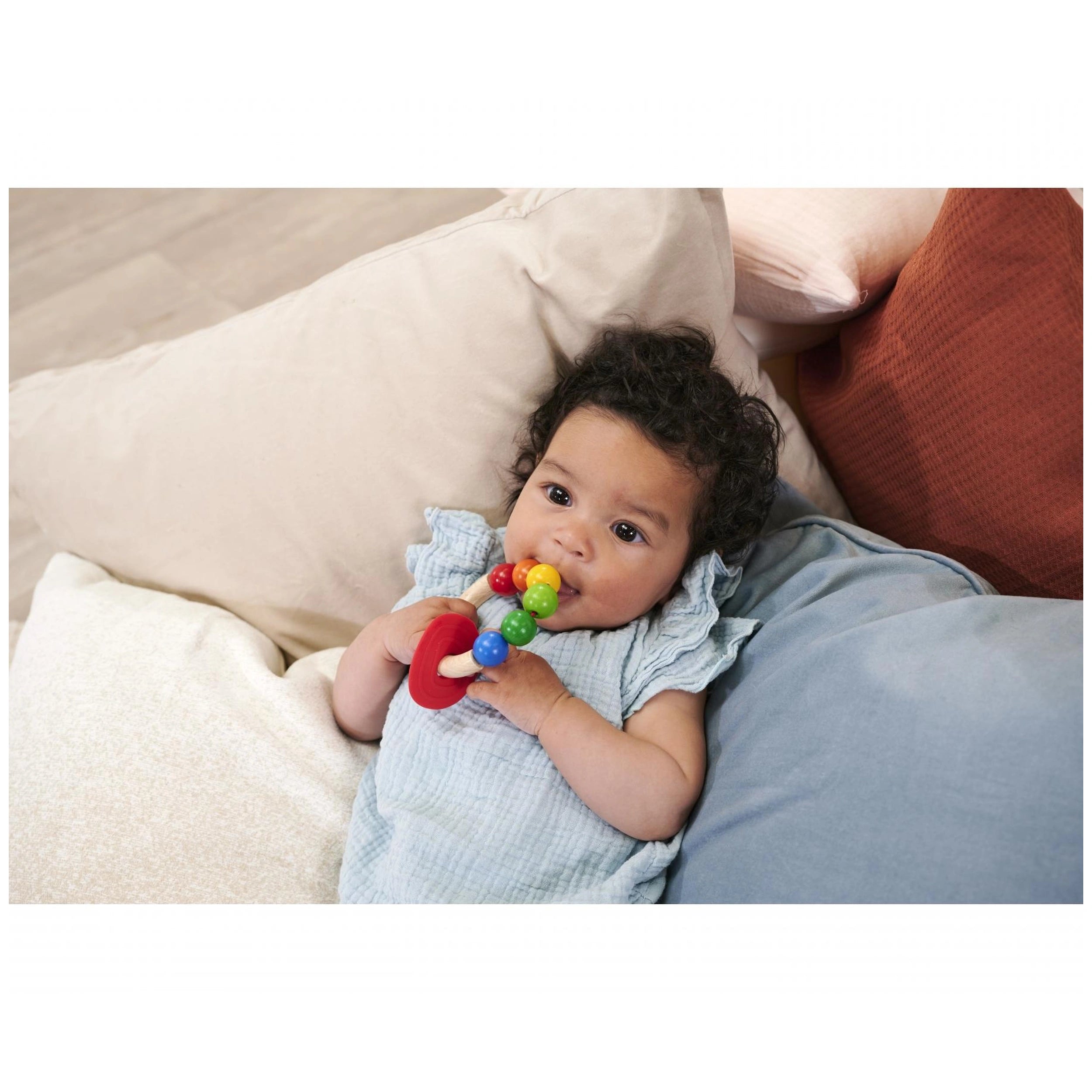 The Eichhorn teething ring is specifically engineered to provide comfort during the teething phase. The textured biting surface is perfect for soothing sore gums, allowing your baby to find relief while exploring their newfound ability to grasp and manipulate objects. The combination of smooth wood and sensory beads creates an enriching experience that promotes fine motor skills and hand-eye coordination.