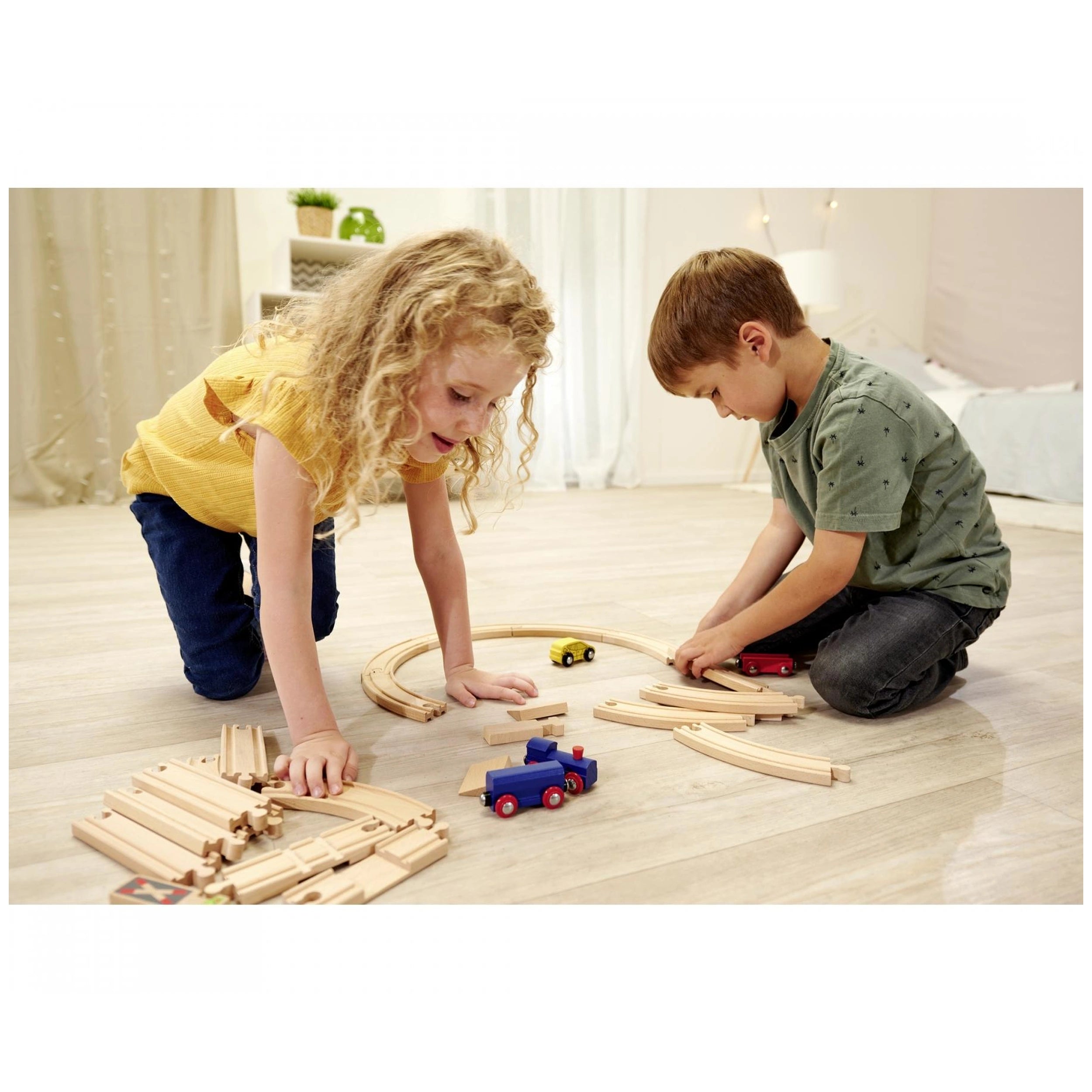 Constructed from 100% FSC® certified wood, the Eichhorn Train Track Playset not only promises durability but also supports sustainable forestry practices. This commitment to environmental responsibility ensures that parents can feel good about their purchase while providing their children with a high-quality toy. The smooth finish and vibrant colors of the wooden pieces are designed to withstand the rigors of play, ensuring that this set will be a cherished part of your child's toy collection for years to come.