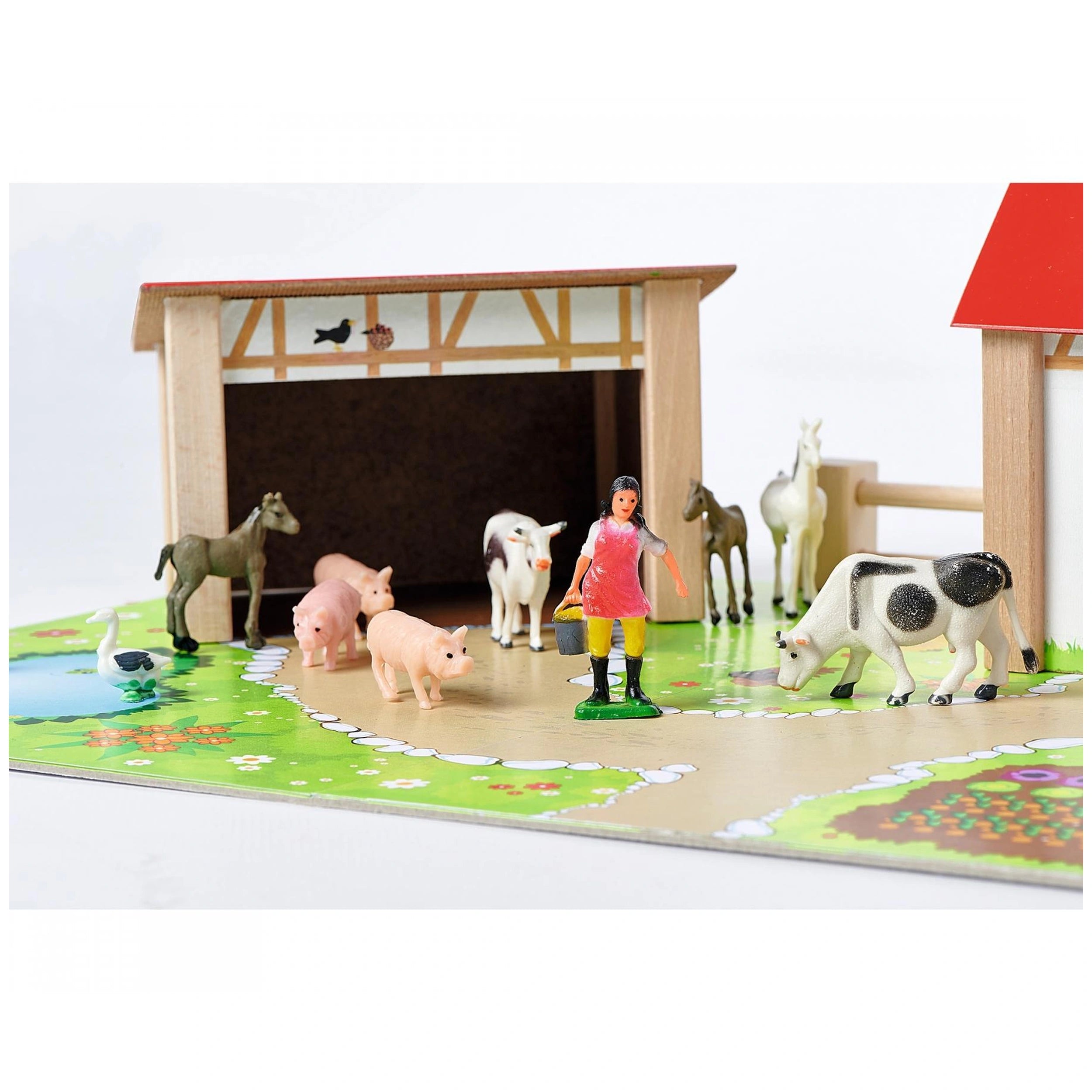 Introducing the Eichhorn Wooden Farm with Accessories, a delightful 20-piece toy playset designed to inspire imaginative play in children aged three and up. This beautifully crafted wooden farm set includes a variety of charming accessories, such as livestock animals including horses, cows, pigs, and geese, along with a cozy house, a barn, and figures of a farmer and his wife. Each piece is meticulously designed to engage young minds and encourage storytelling, making it an ideal addition to any child's toy collection.